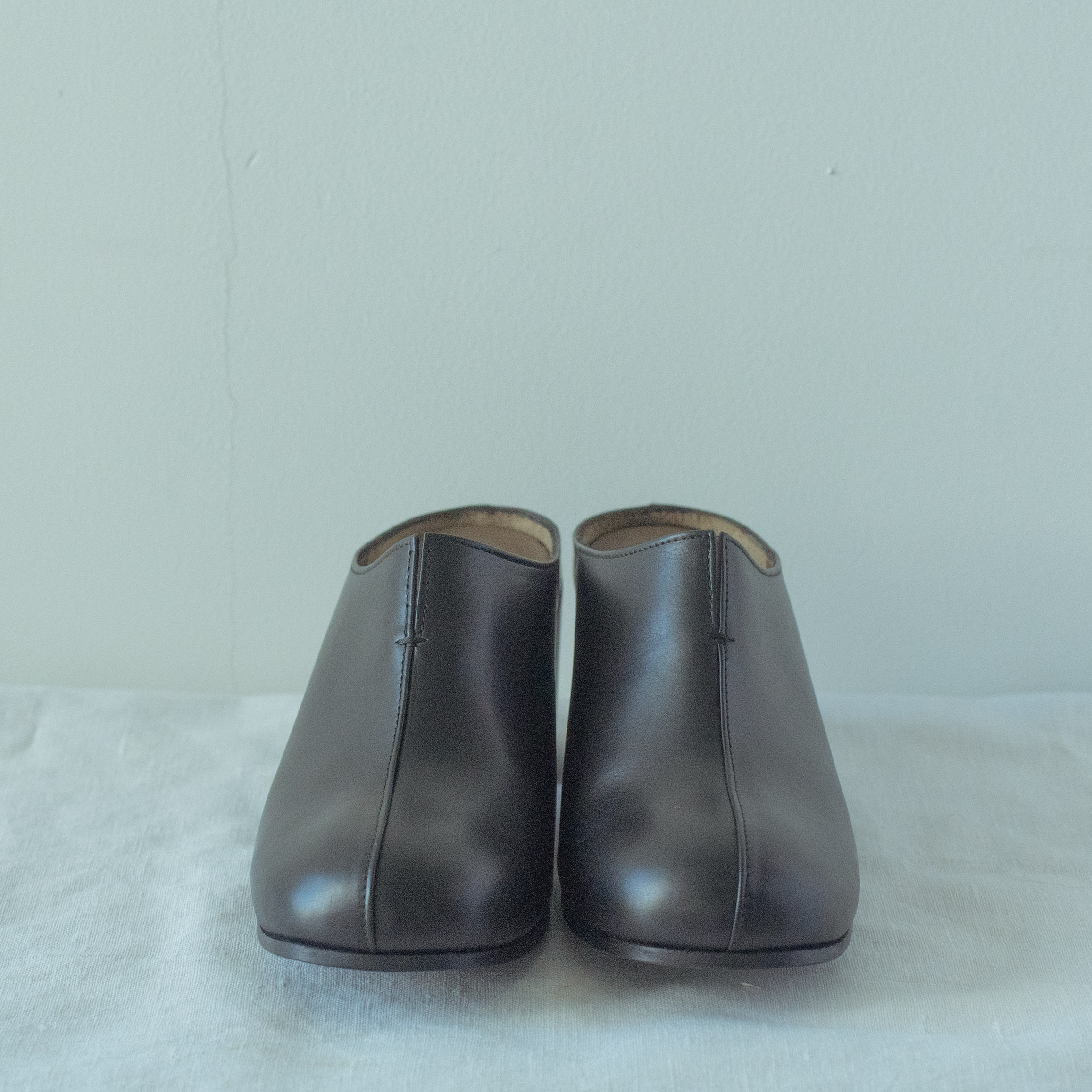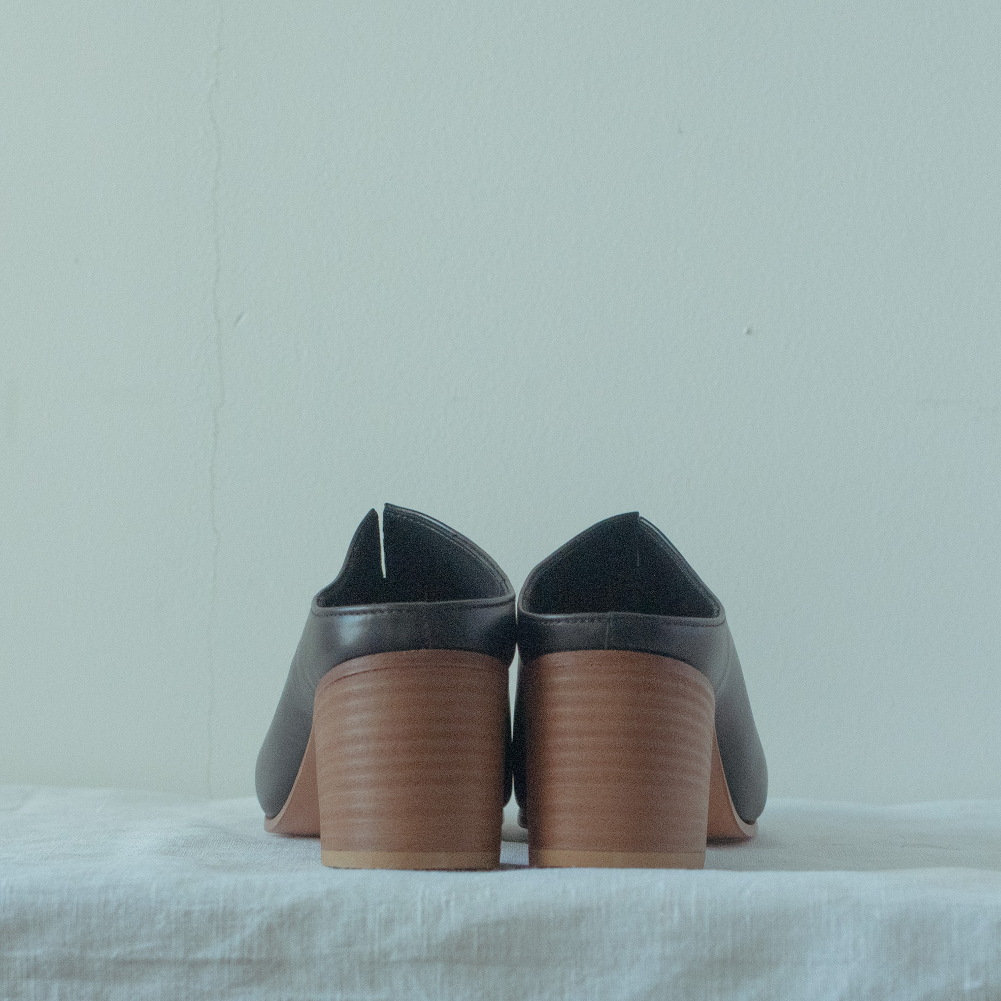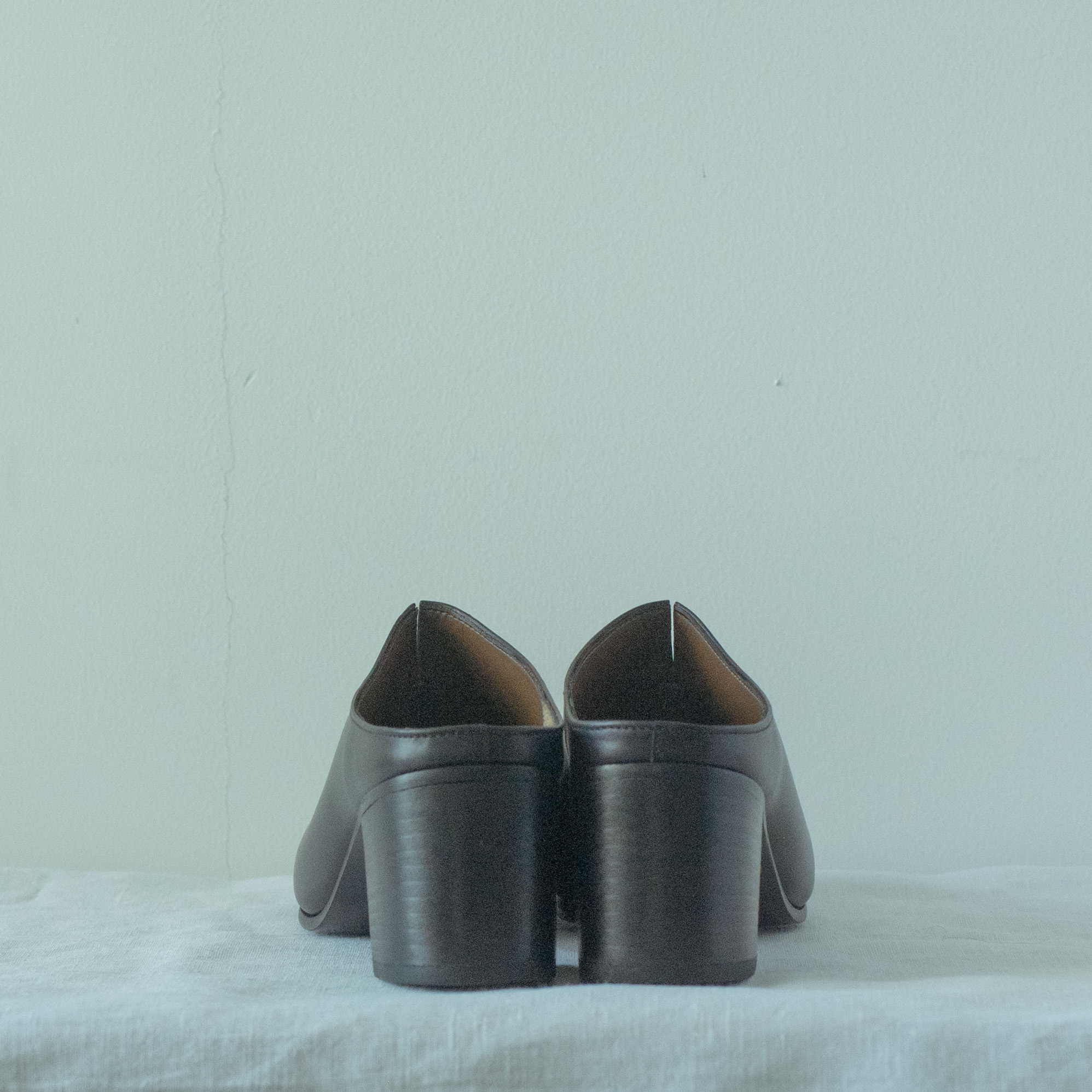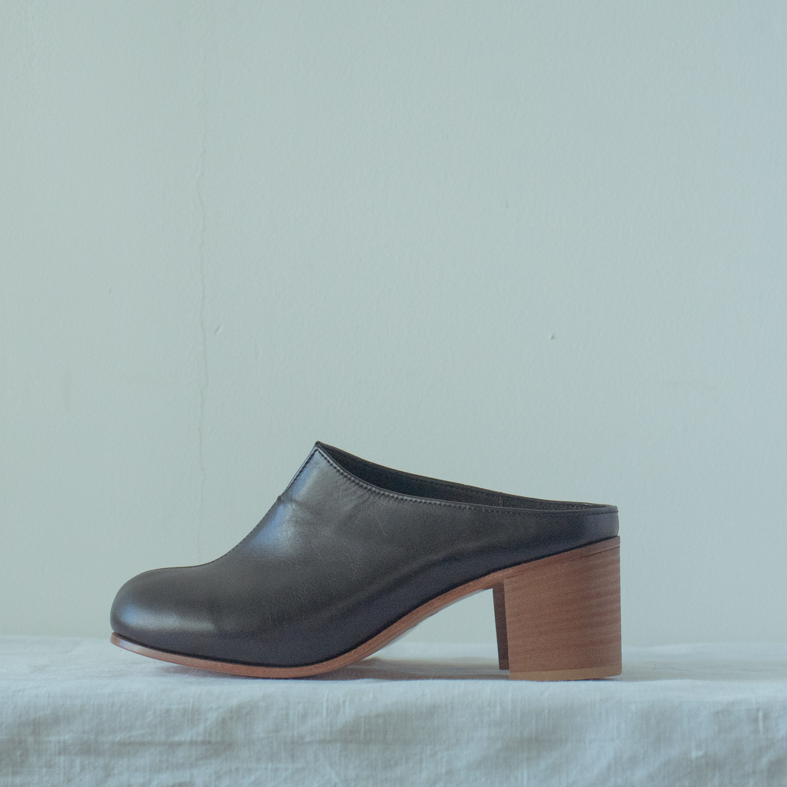 ぼってりとしたシルエットがアイコニックなヒールタイプのミュール。