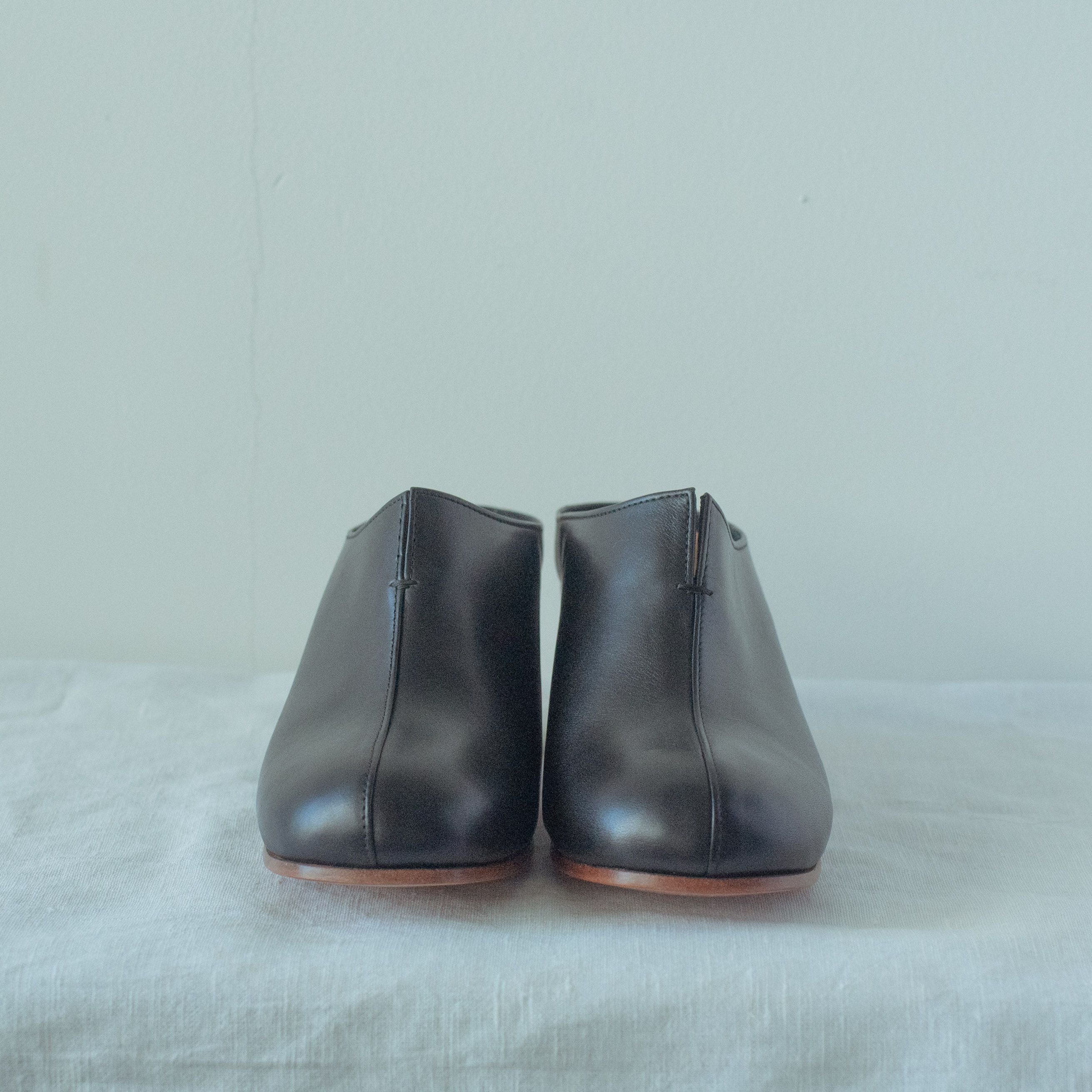 ヒールパンプスではサイズ感が難しかった方にも、かかと周りがないデザインの為、甲周りにゆとりができ履きやすい1足です。