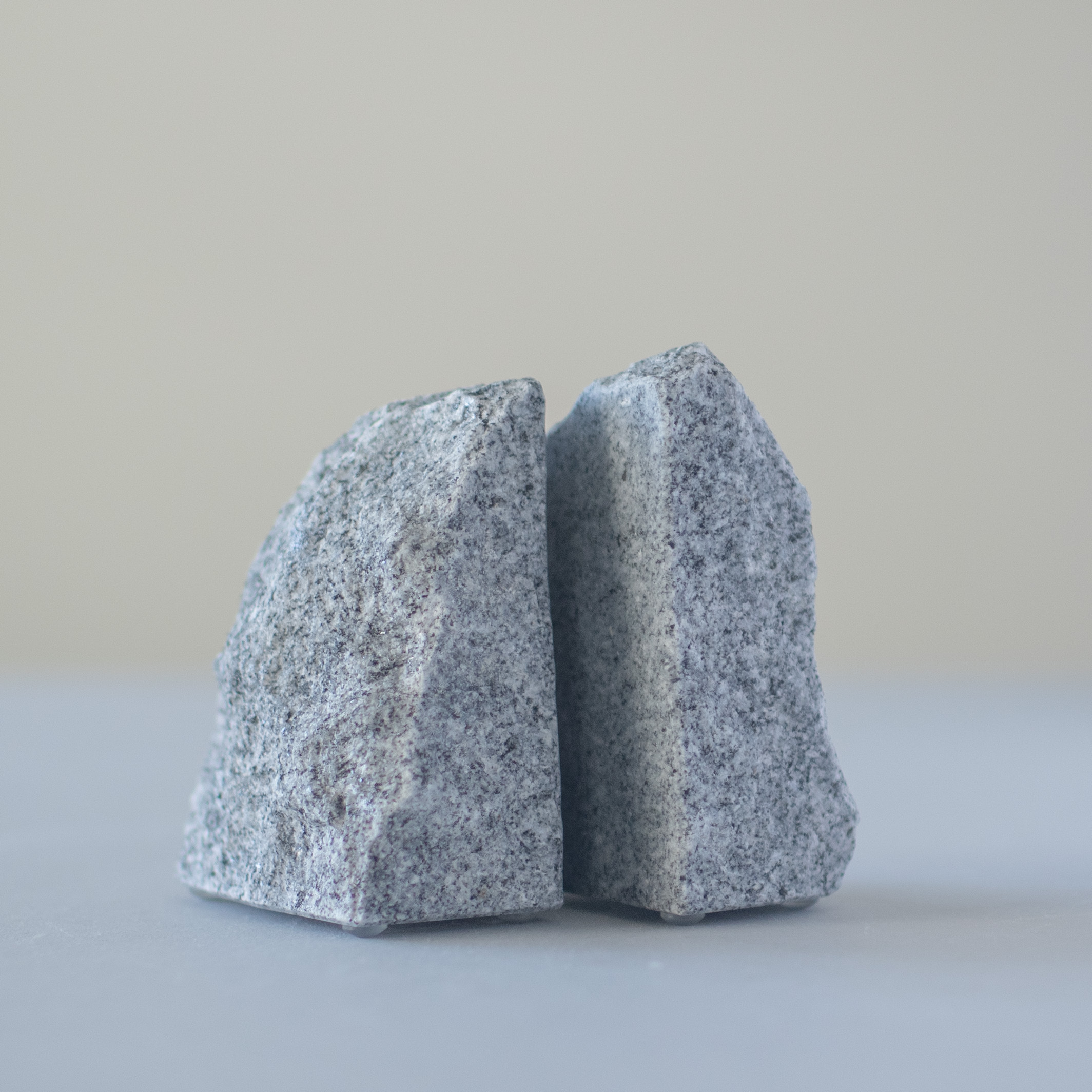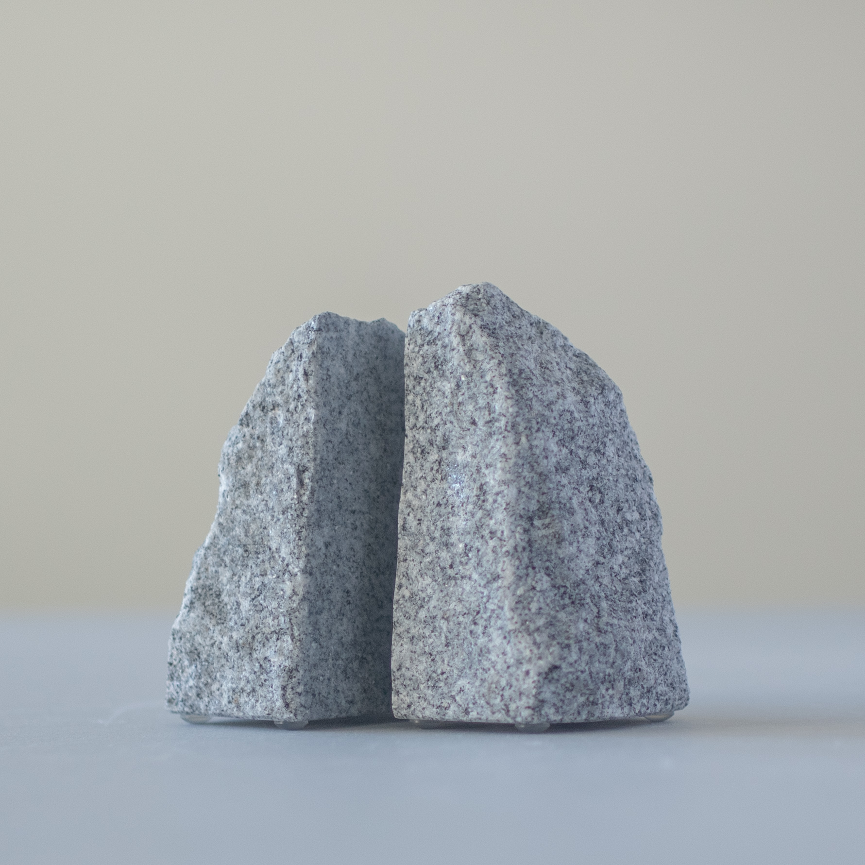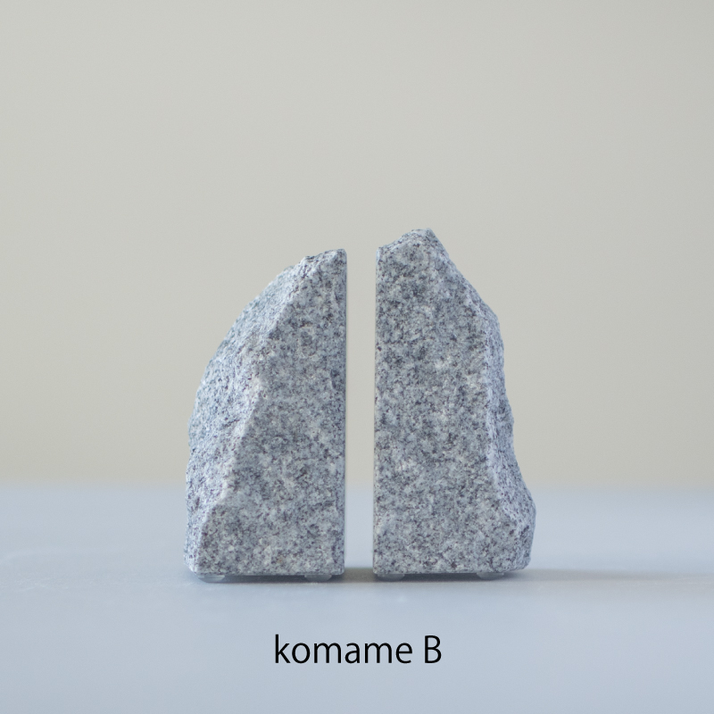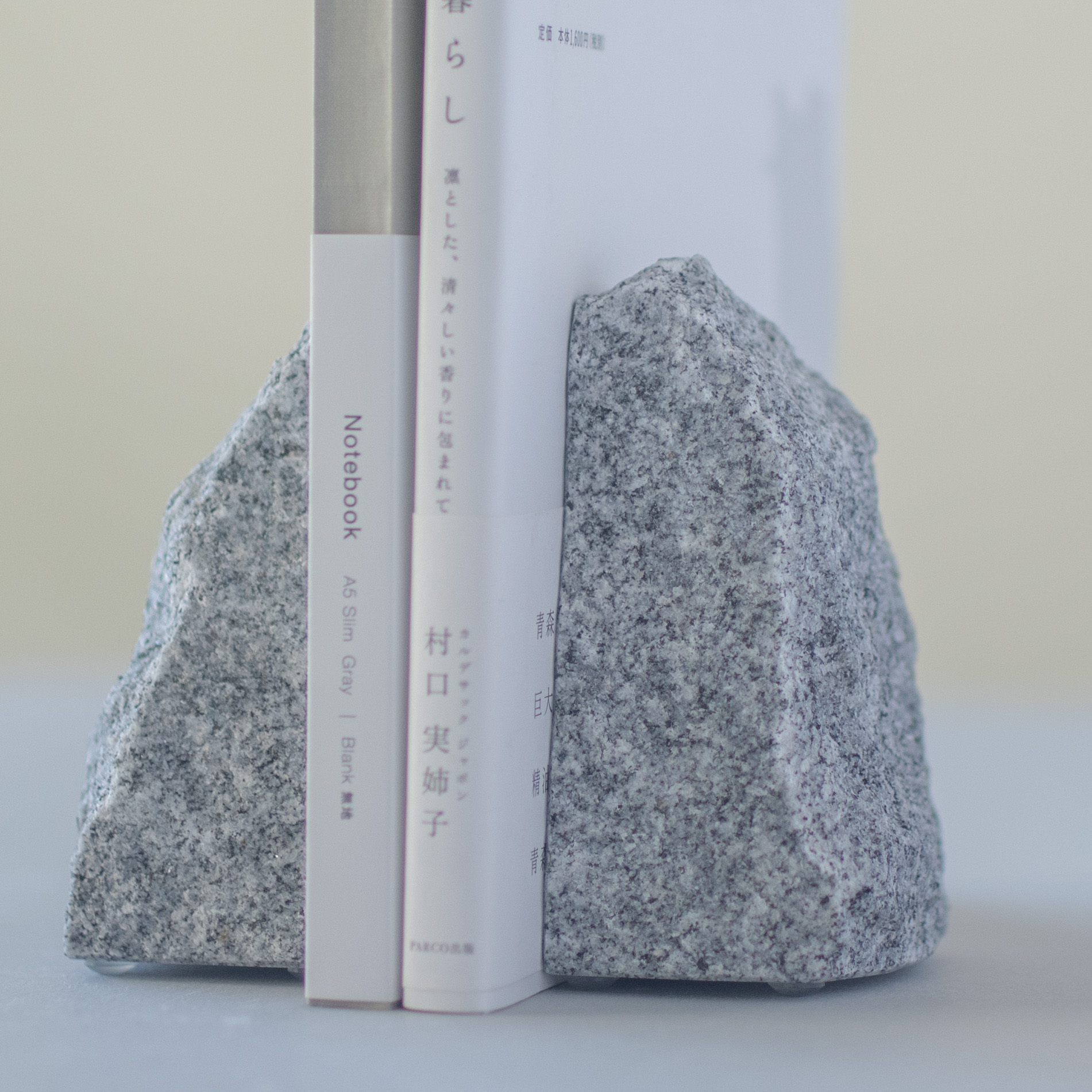 「花崗岩のダイヤモンド」とも呼ばれる庵治石(あじいし)を2つに割り、本に接する面と底面は本や設置面を傷めないように研きの加工が施され、ガラス面のようなつるりとした滑らかさです。