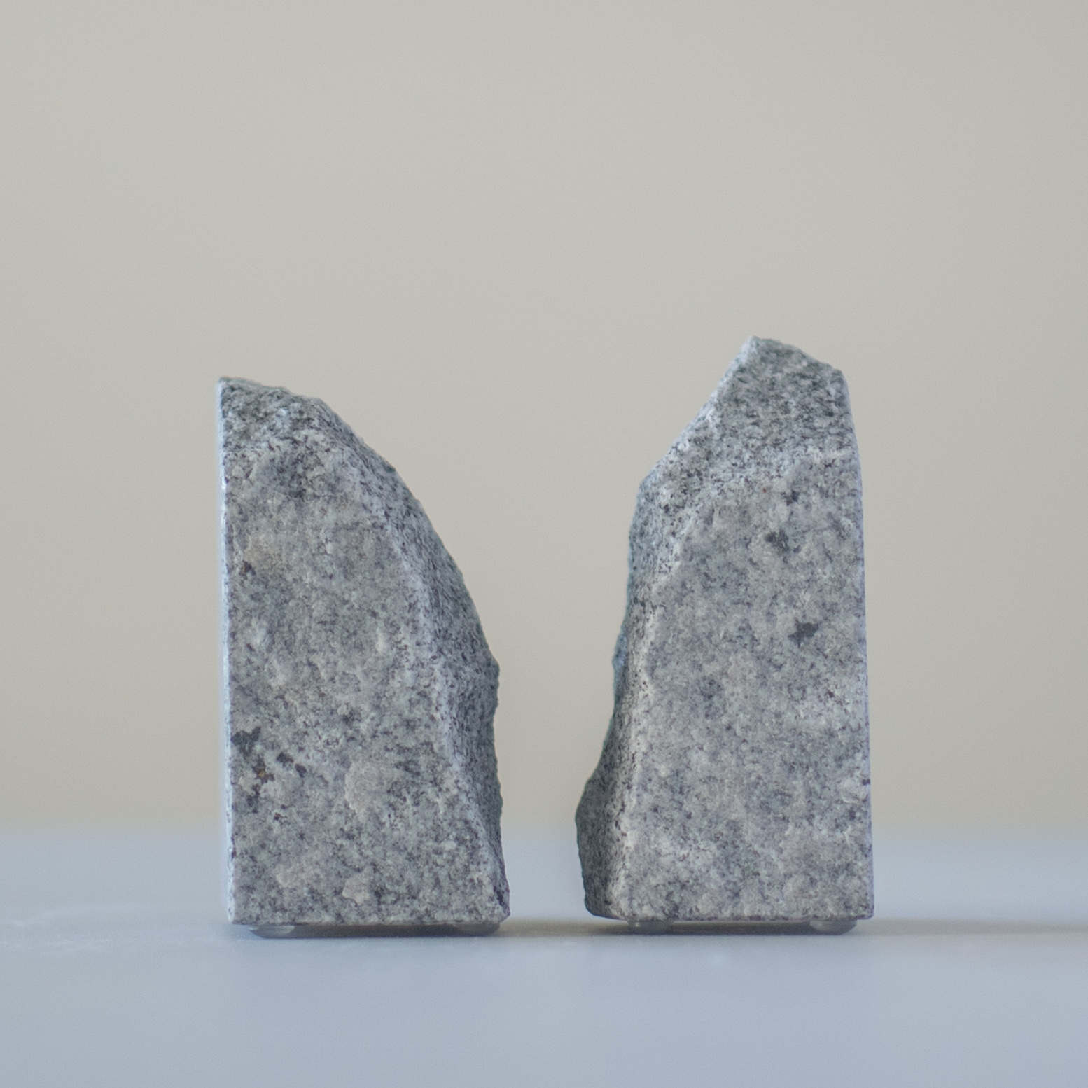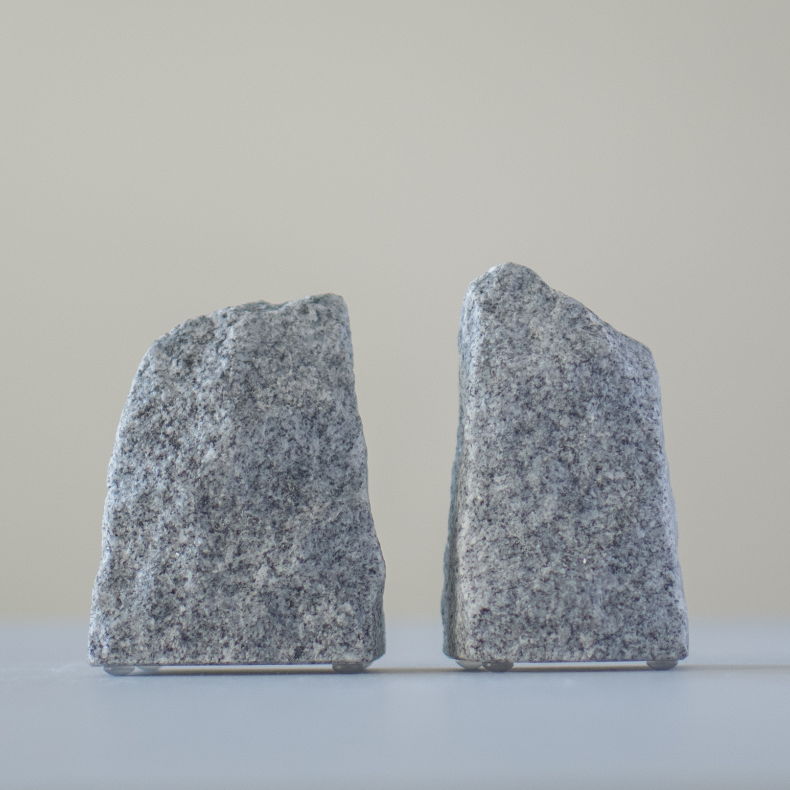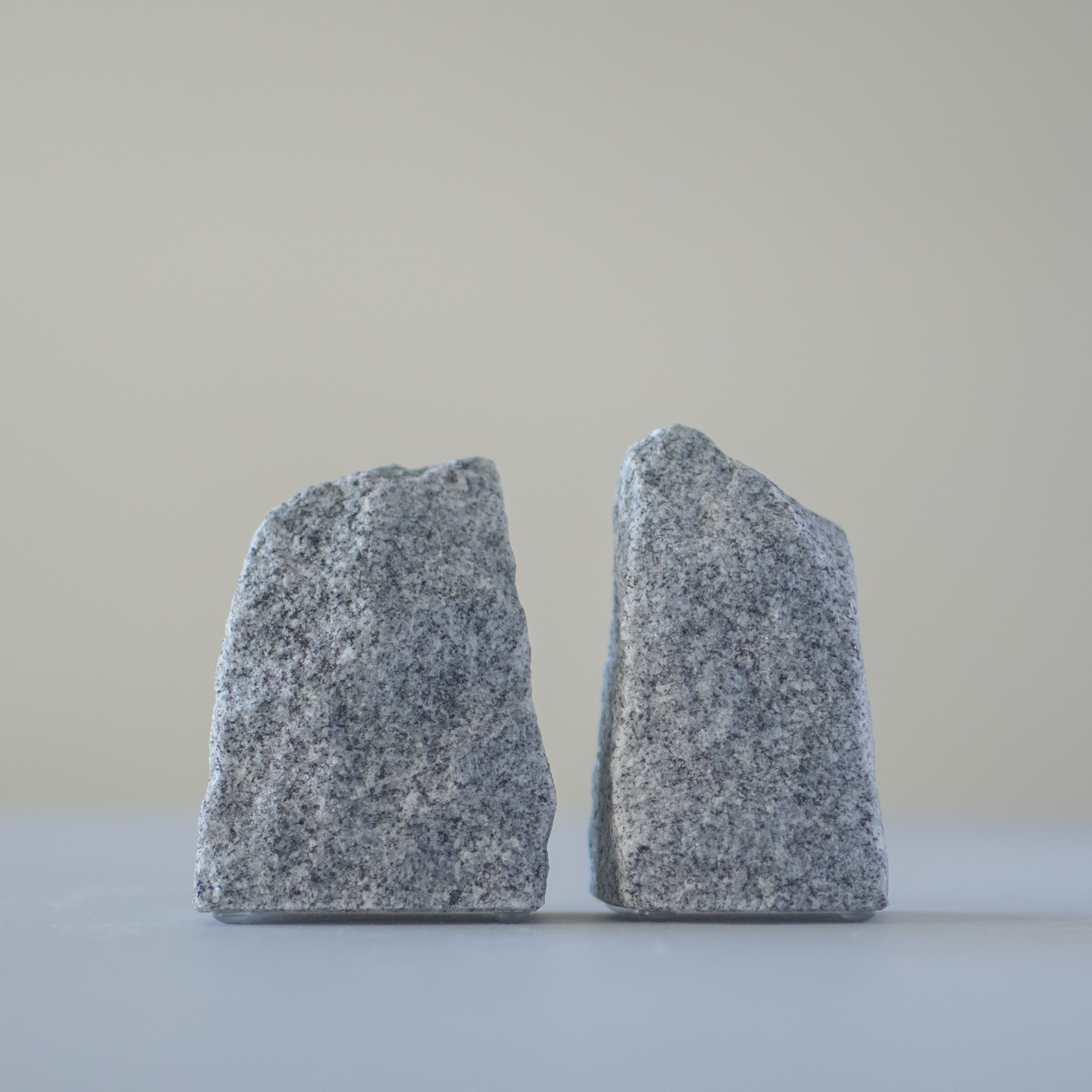 「花崗岩のダイヤモンド」とも呼ばれる庵治石(あじいし)を2つに割り、本に接する面と底面は本や設置面を傷めないように研きの加工が施され、ガラス面のようなつるりとした滑らかさです。