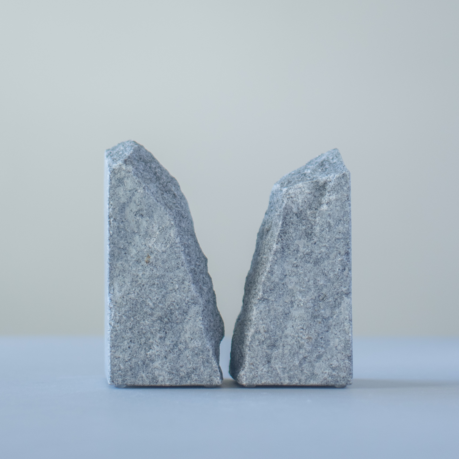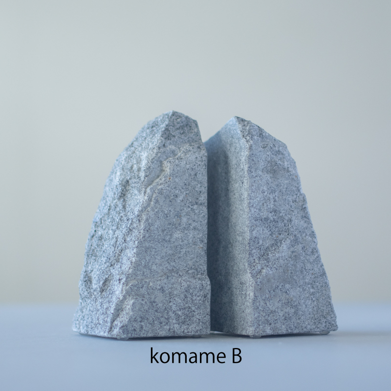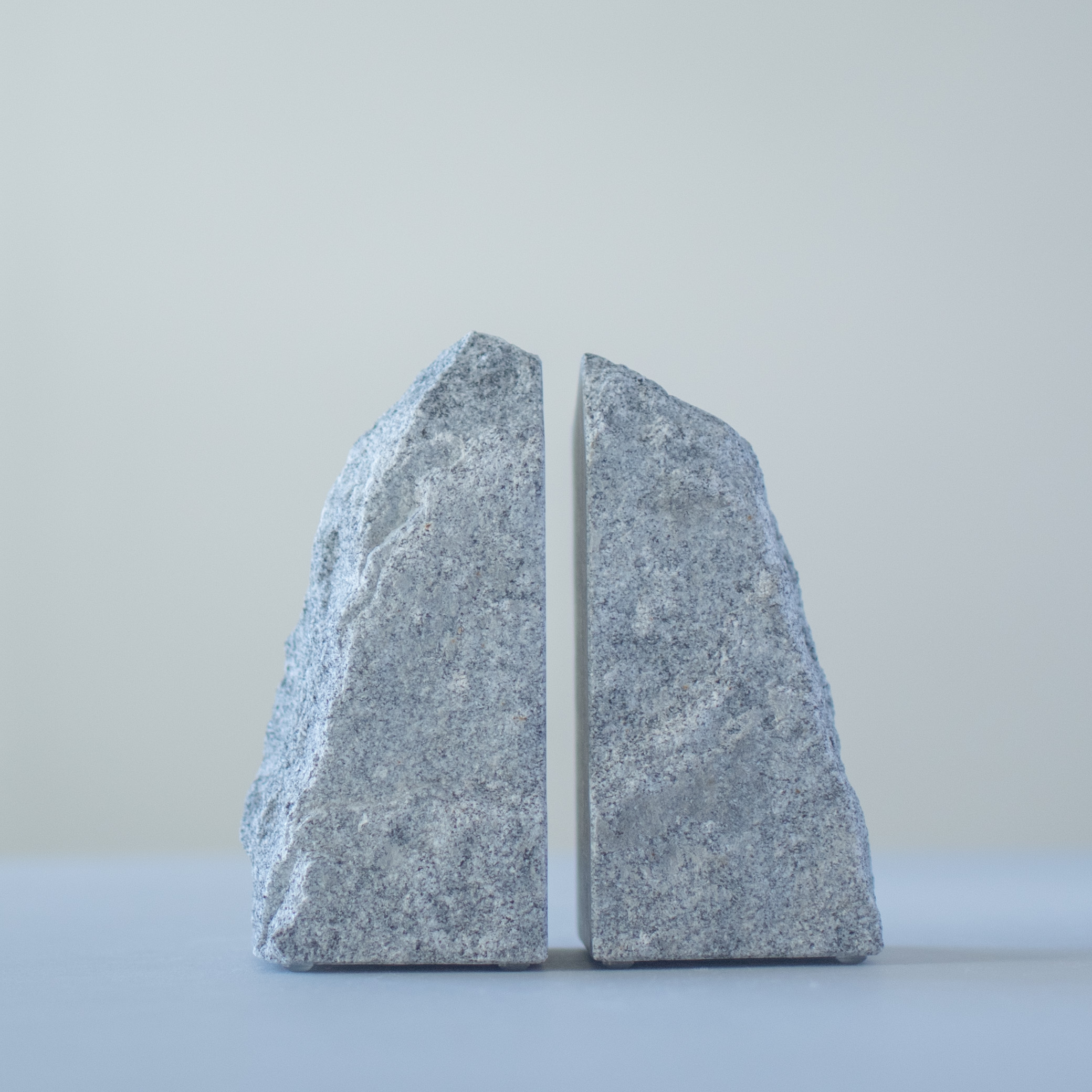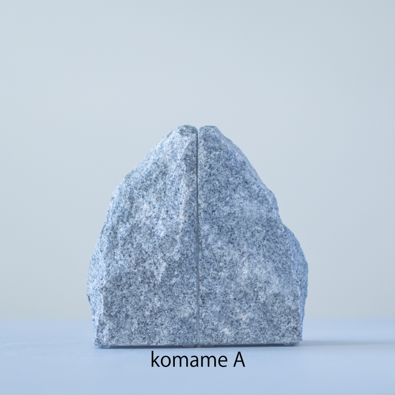 「花崗岩のダイヤモンド」とも呼ばれる庵治石(あじいし)を2つに割り、本に接する面と底面は本や設置面を傷めないように研きの加工が施され、ガラス面のようなつるりとした滑らかさです。