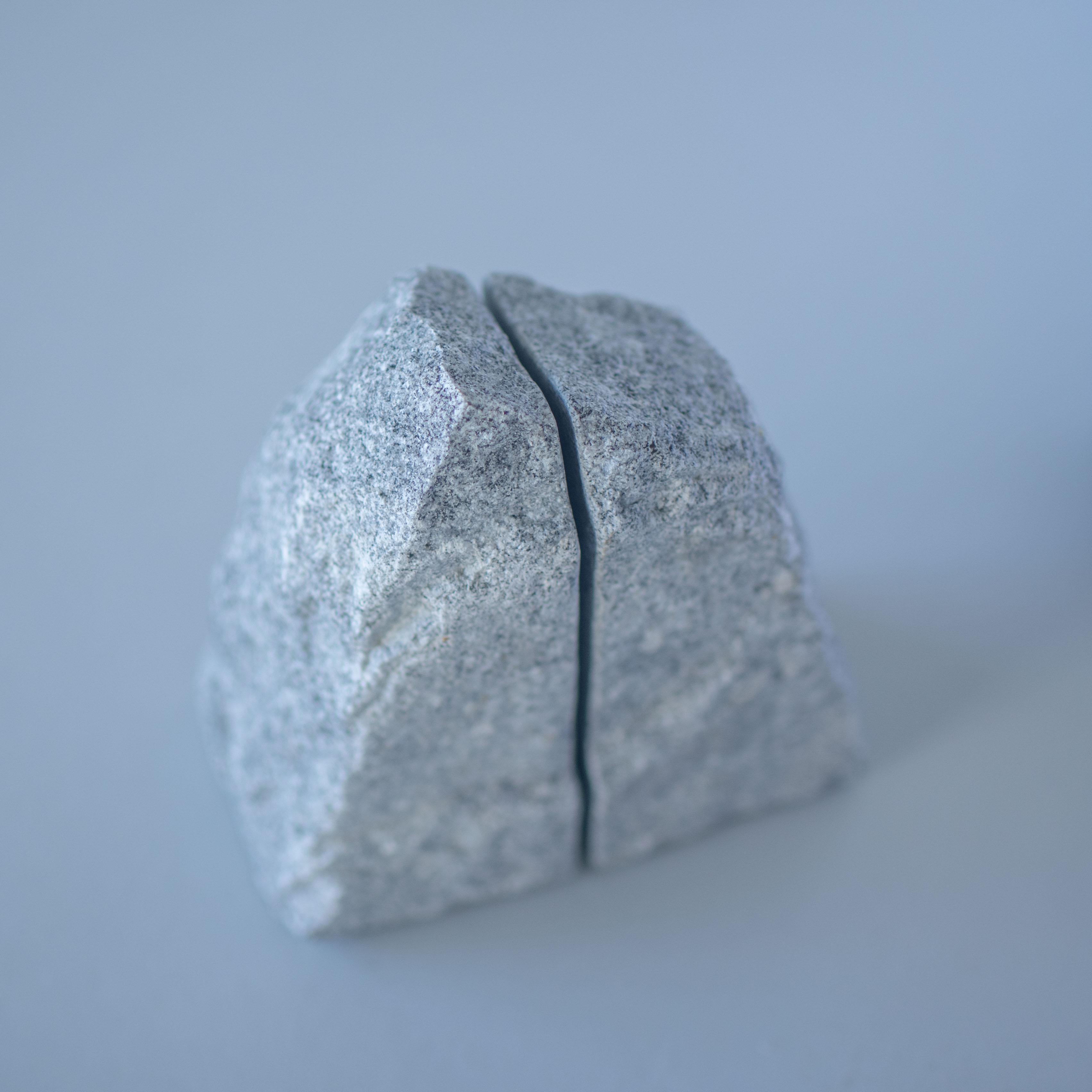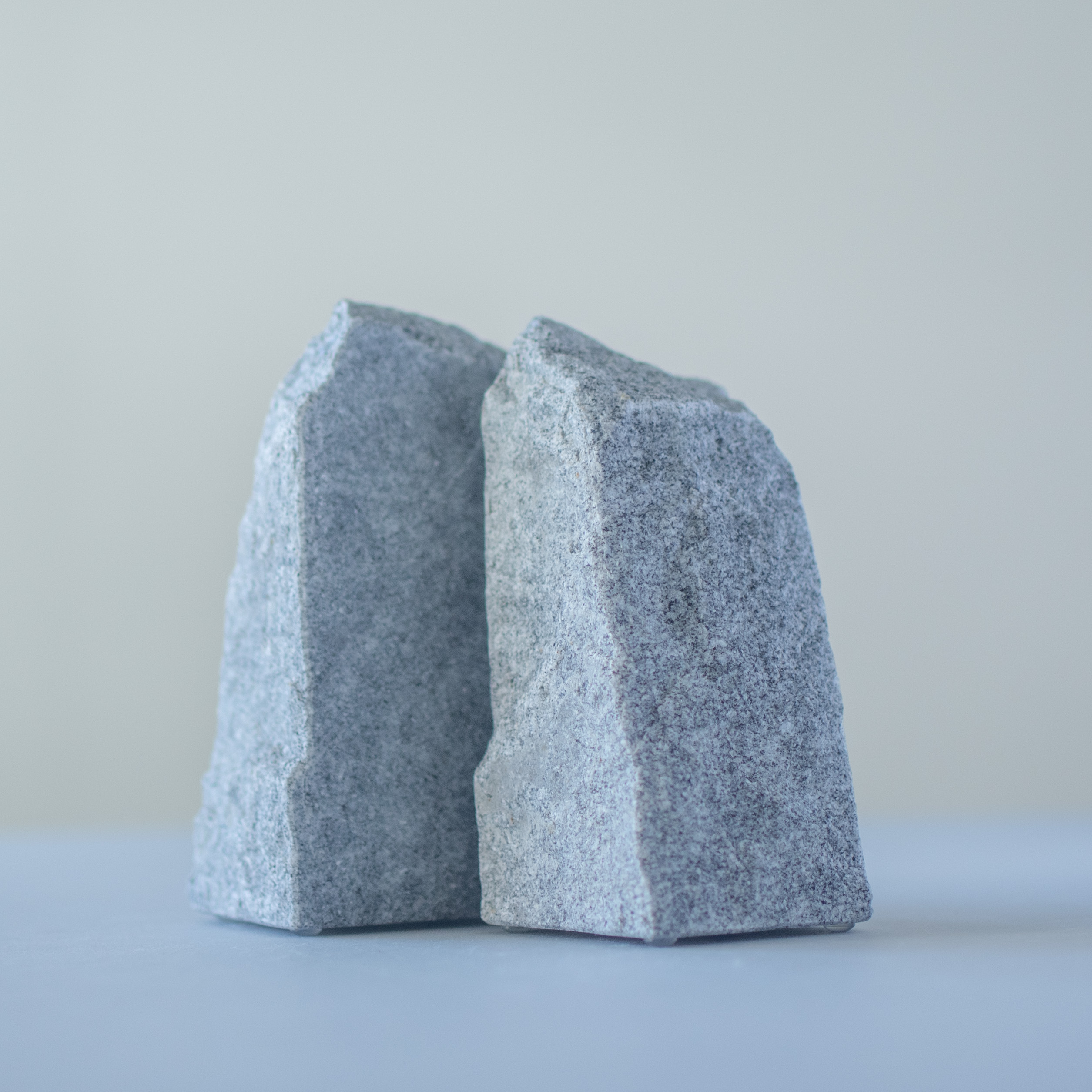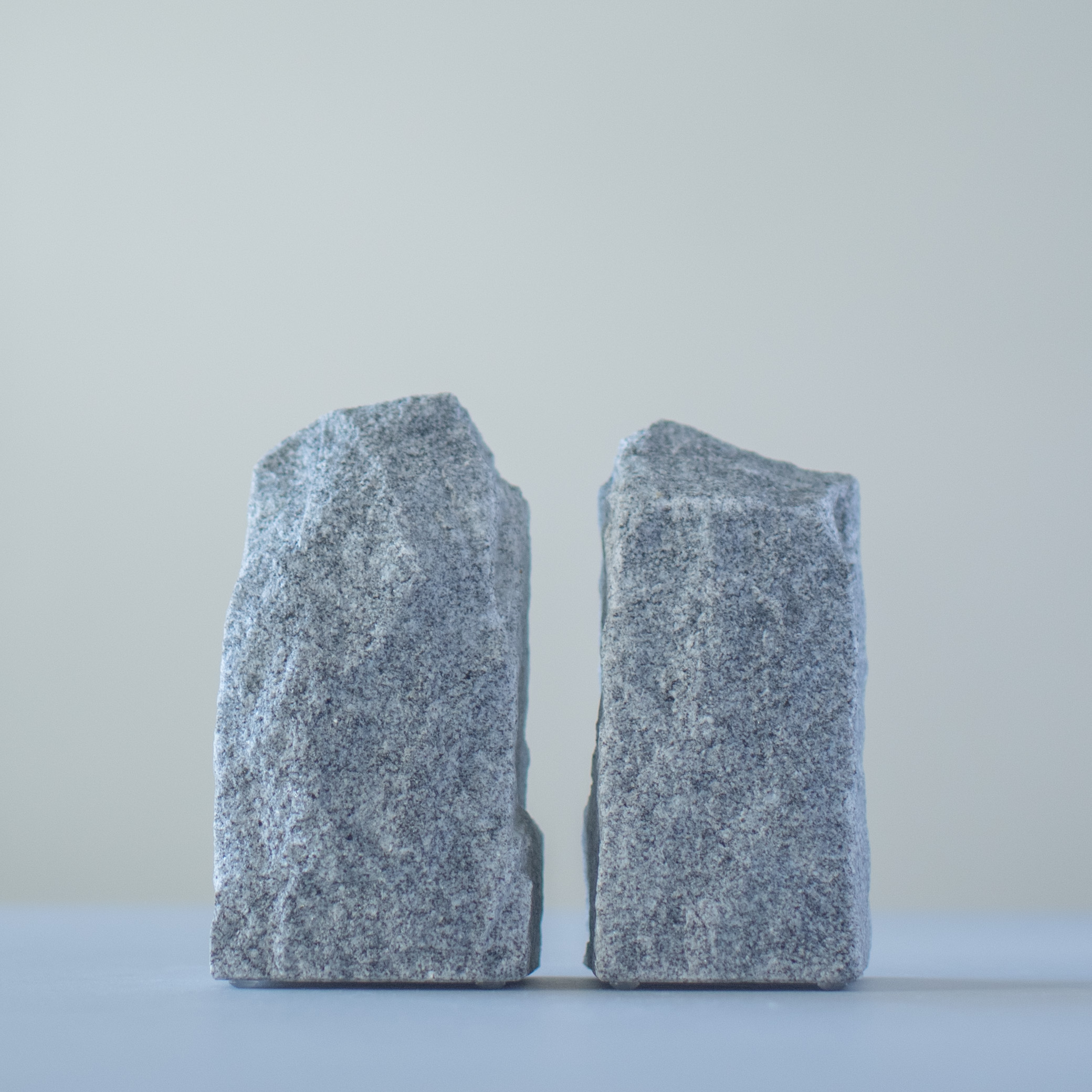 「花崗岩のダイヤモンド」とも呼ばれる庵治石(あじいし)を2つに割り、本に接する面と底面は本や設置面を傷めないように研きの加工が施され、ガラス面のようなつるりとした滑らかさです。