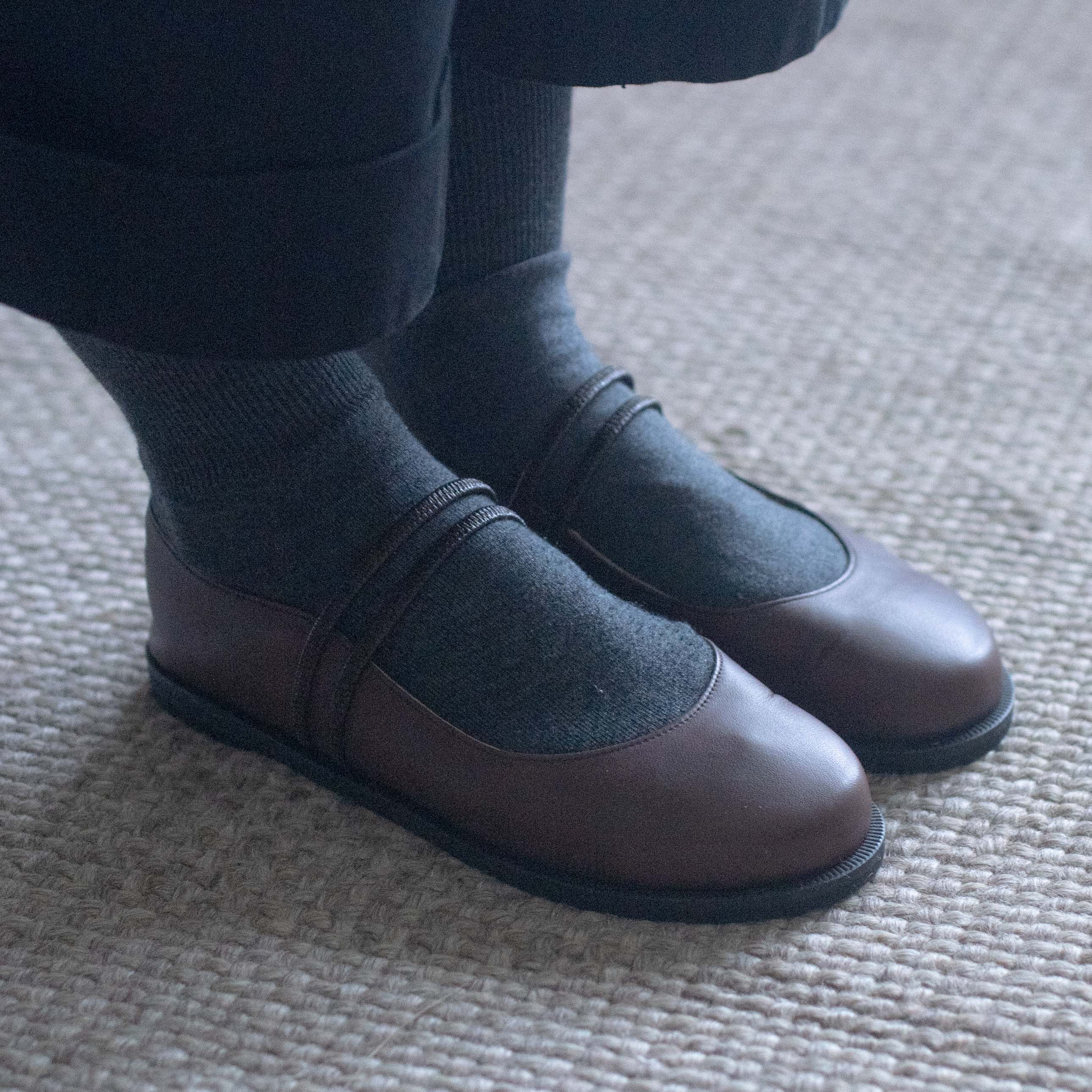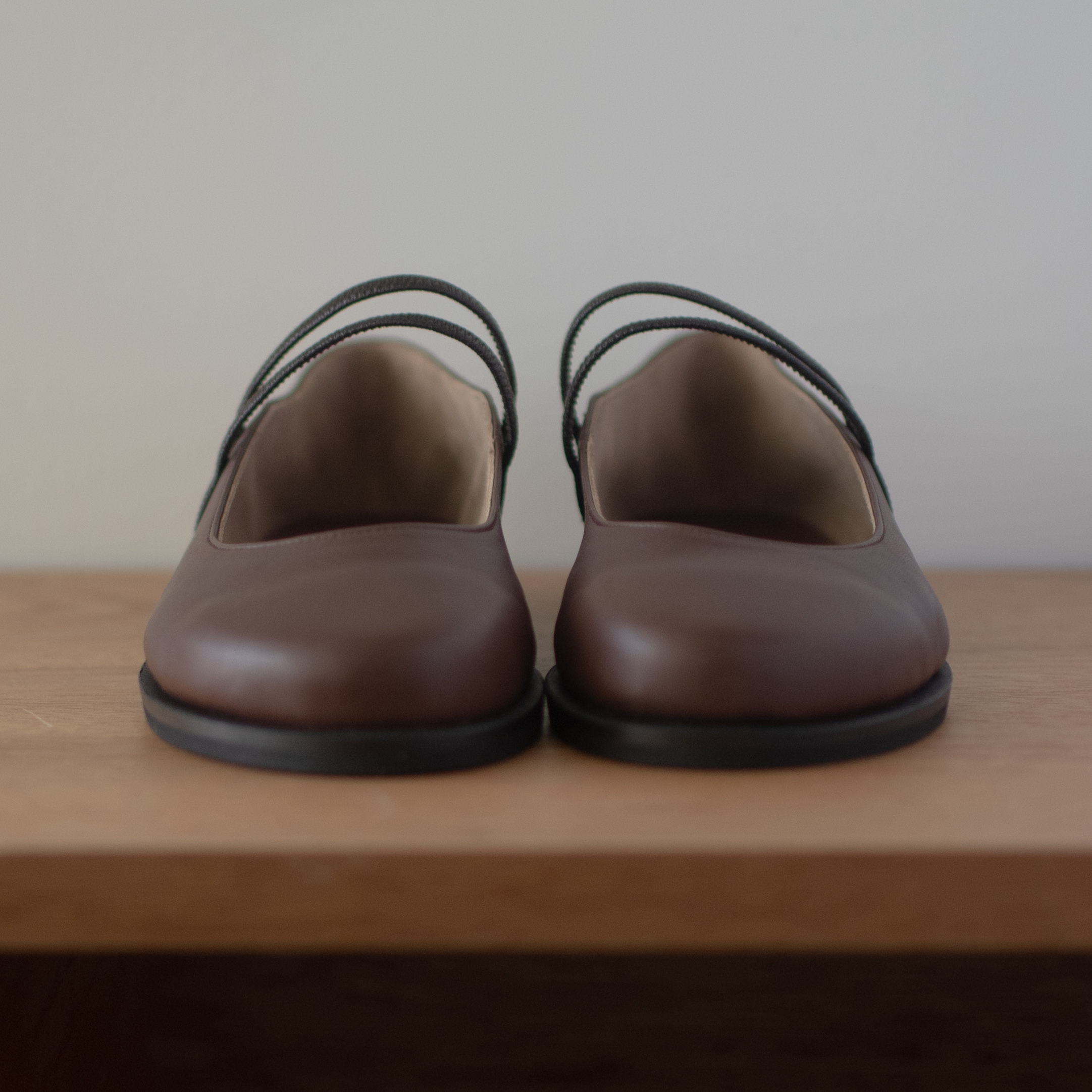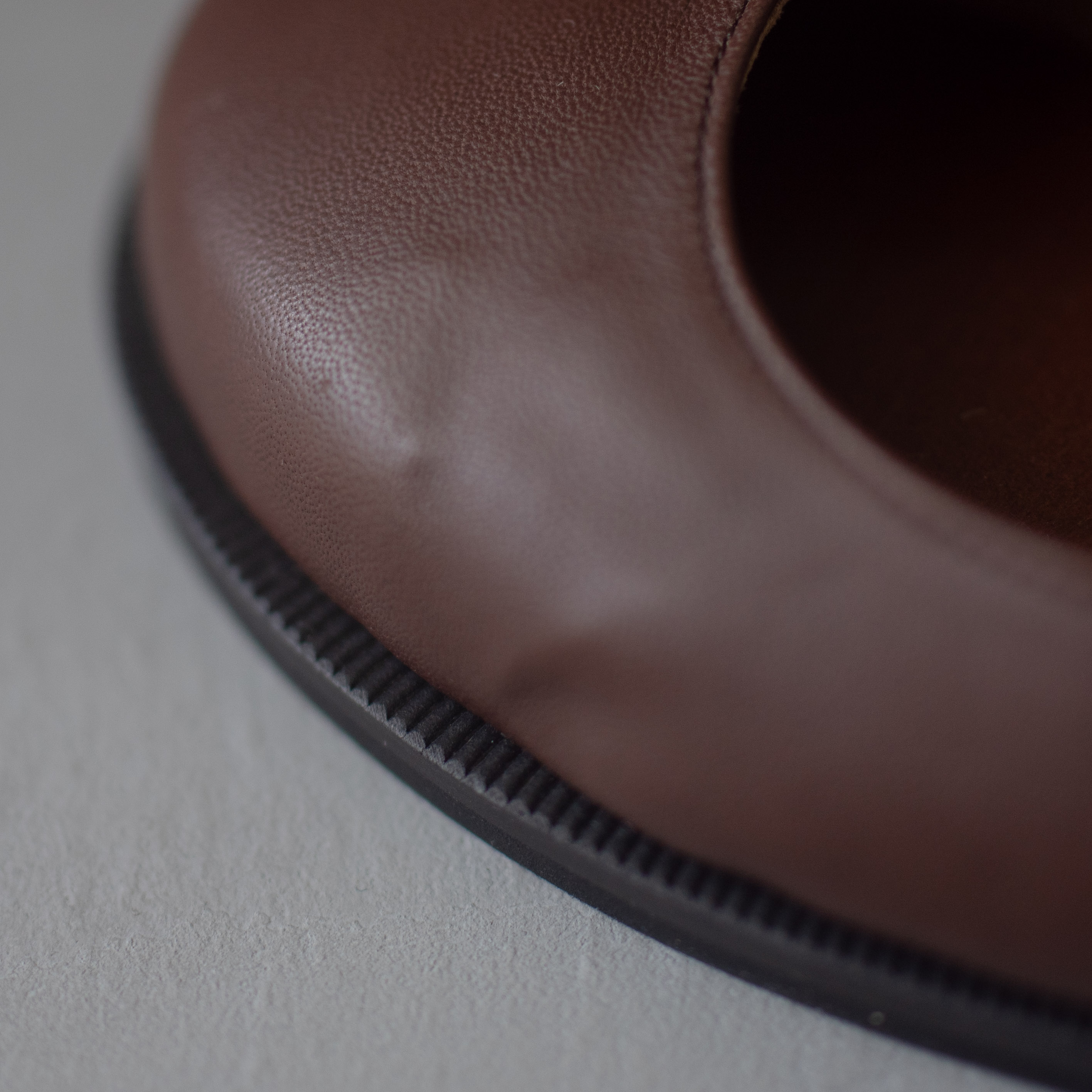甲周りのシェーリングゴムがしっかりと甲を支えてくれます。(シェーリングゴムとは薄くした革の中にゴムが入っているストラップのことです)