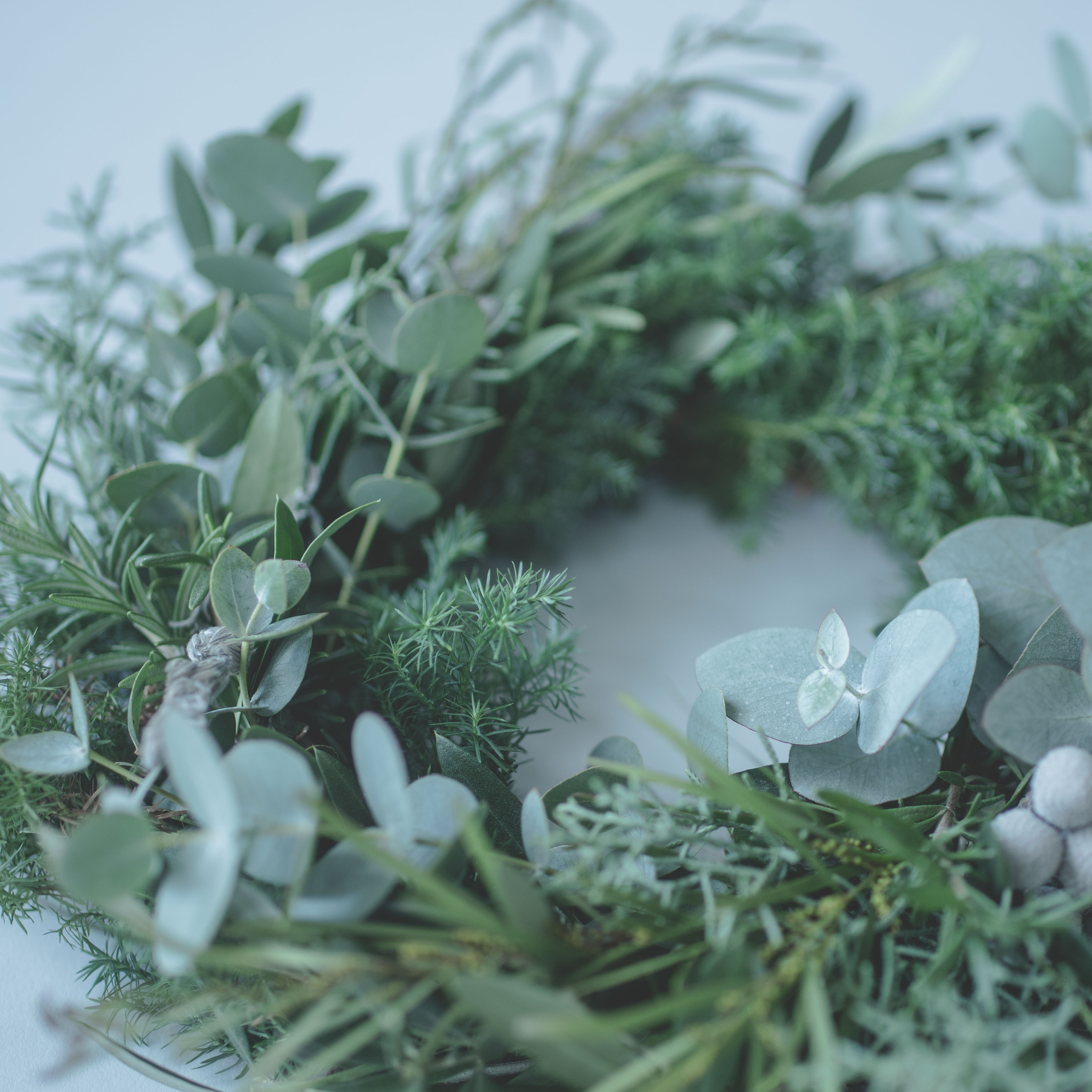 毎年人気のクリスマスリースはフレッシュなグリーンを主体に、fleuriste lallureさんらしく上品にまとめていただきました。