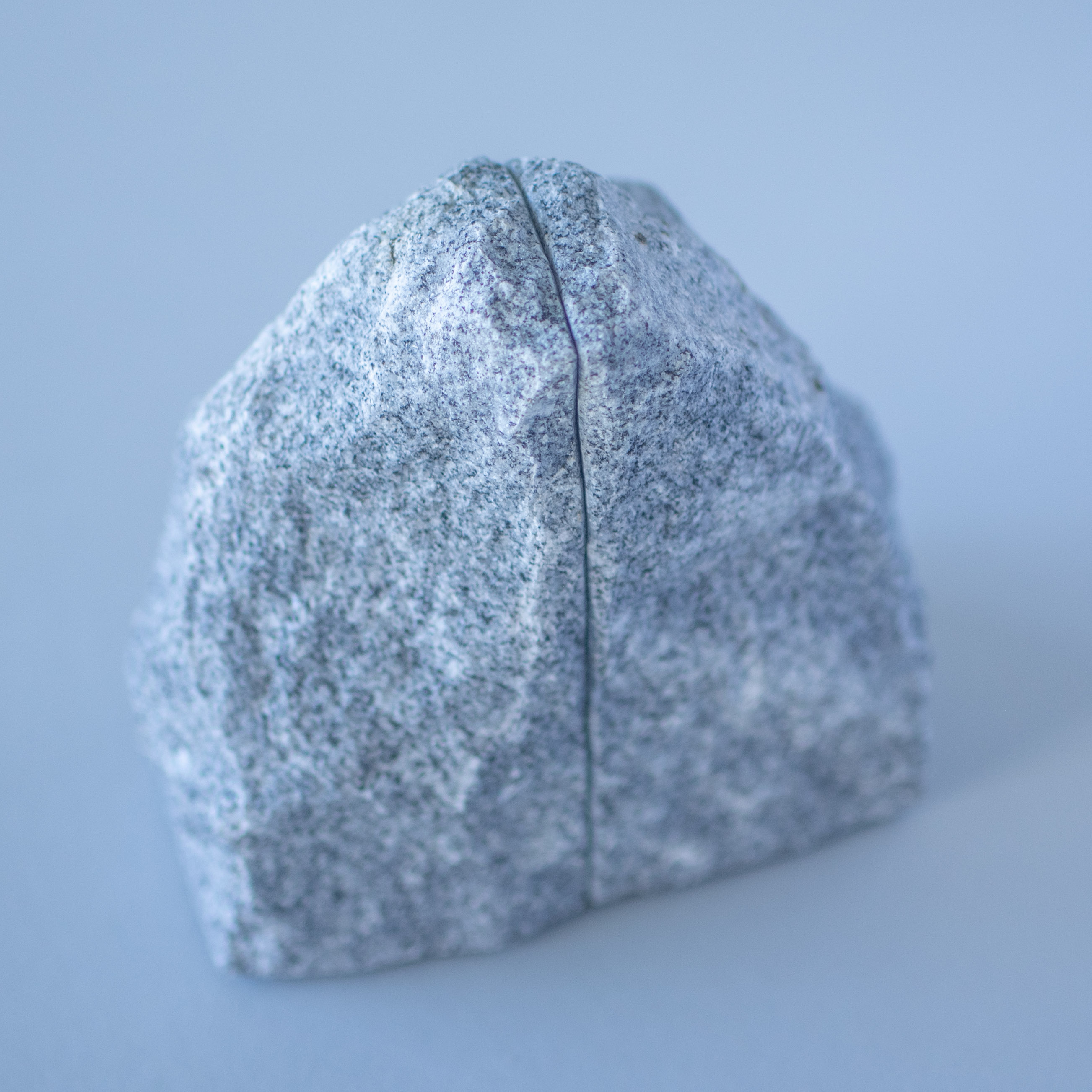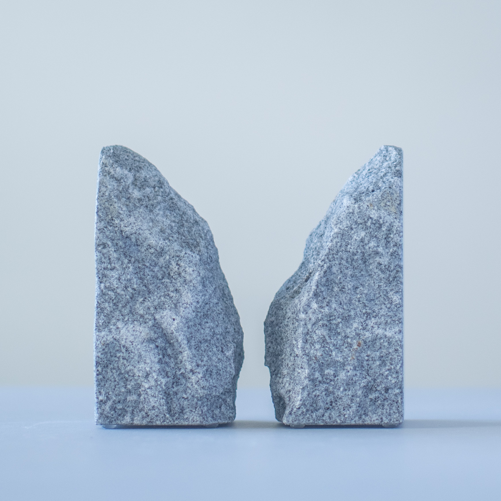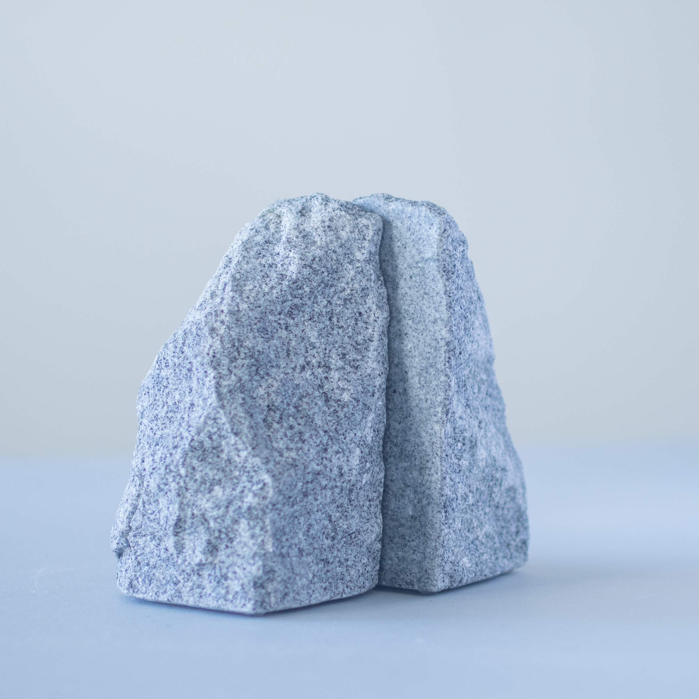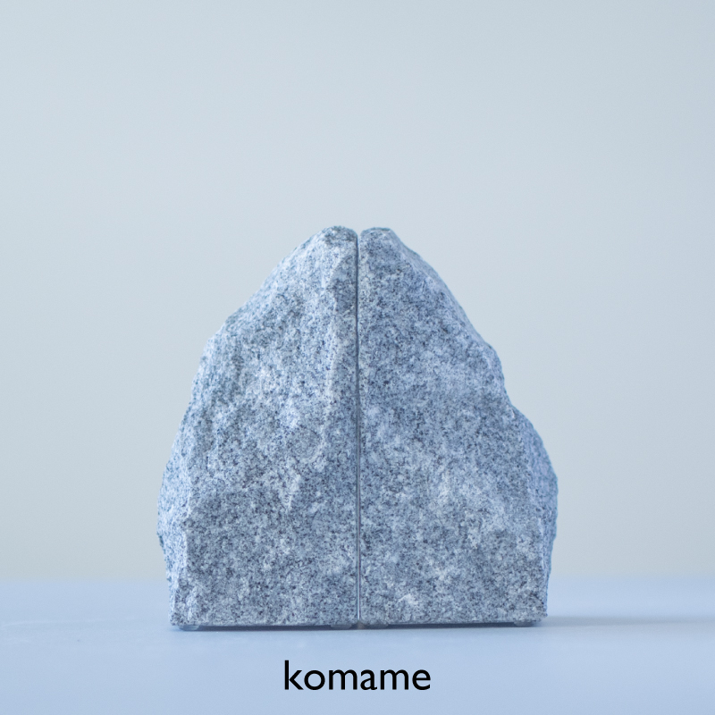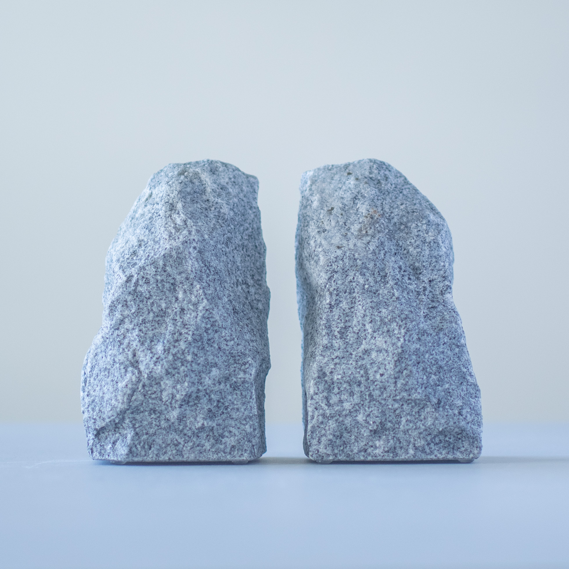 「花崗岩のダイヤモンド」とも呼ばれる庵治石(あじいし)を2つに割り、本に接する面と底面は本や設置面を傷めないように研きの加工が施され、ガラス面のようなつるりとした滑らかさです。