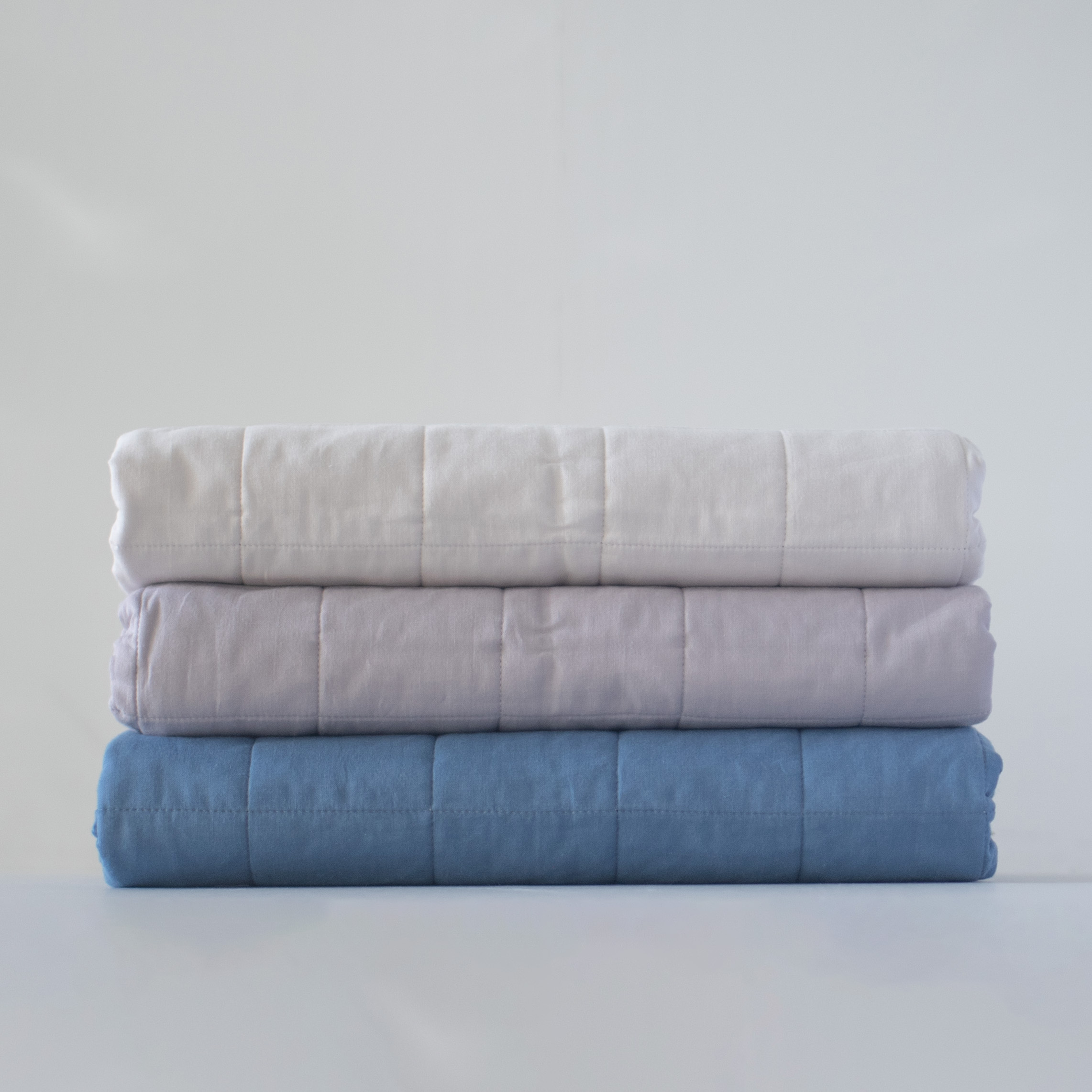 福岡県・うきは市でつくられている、医療用脱脂綿をガーゼで挟みキルトをかけた生地「pasima(パシーマ)®️」を使ったブランケット。