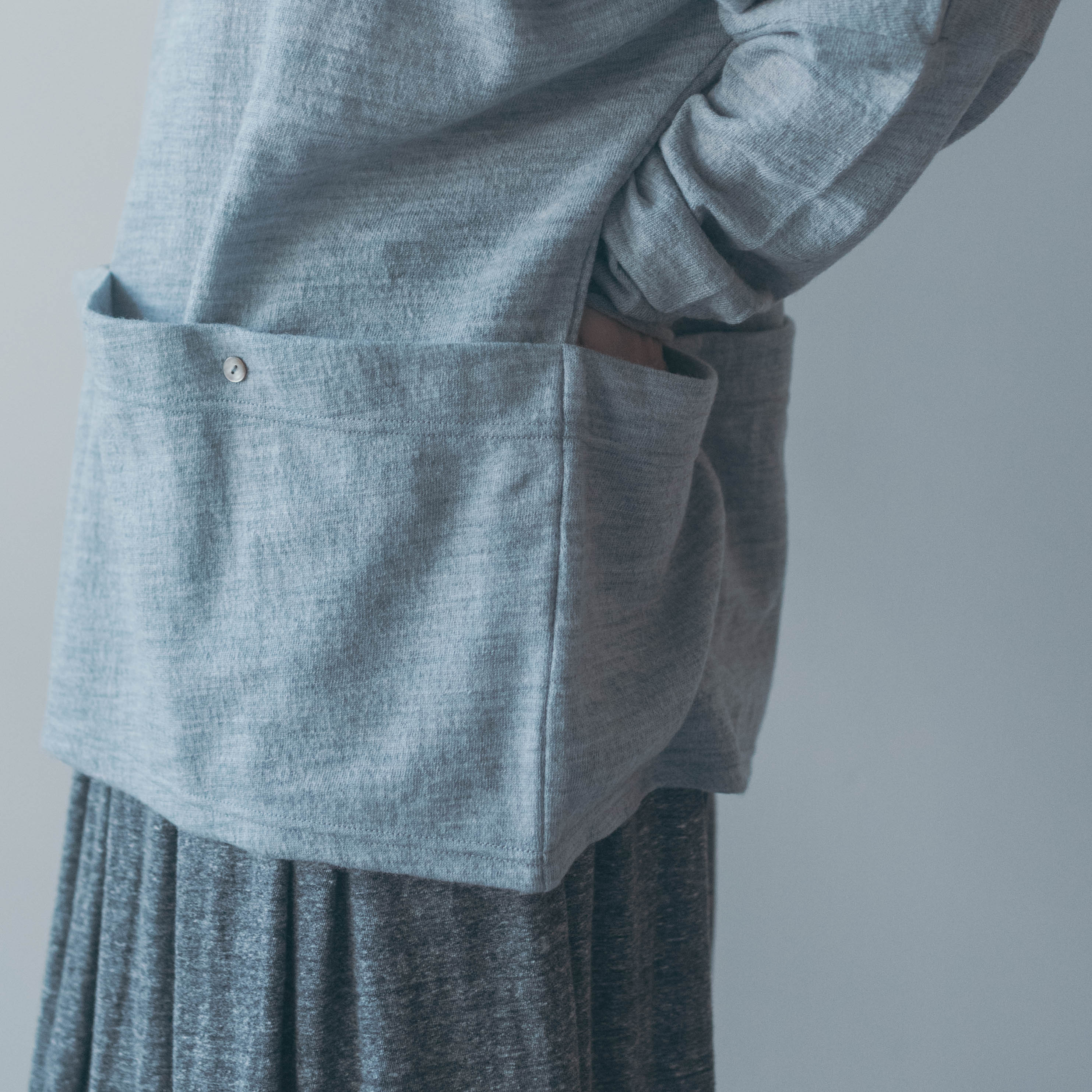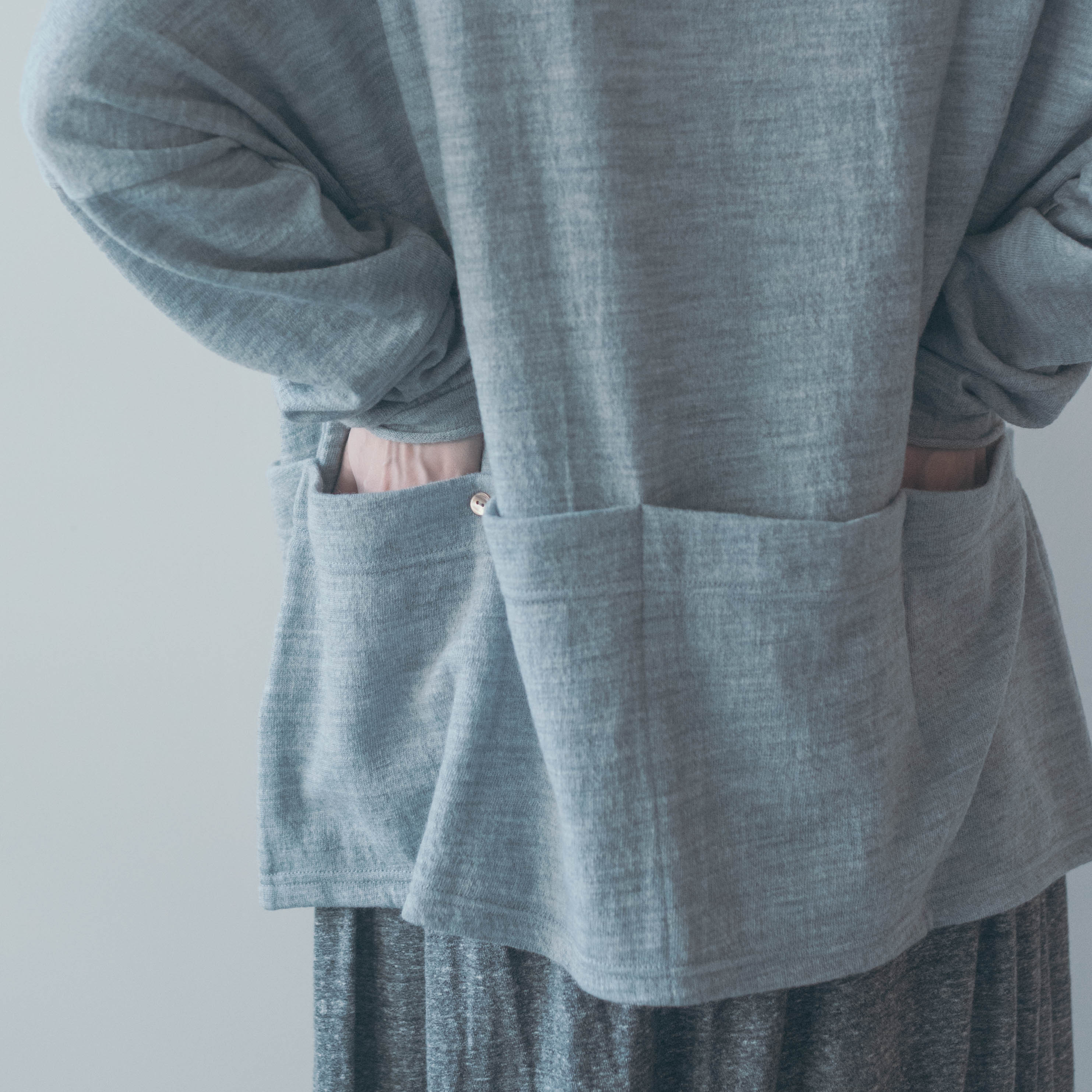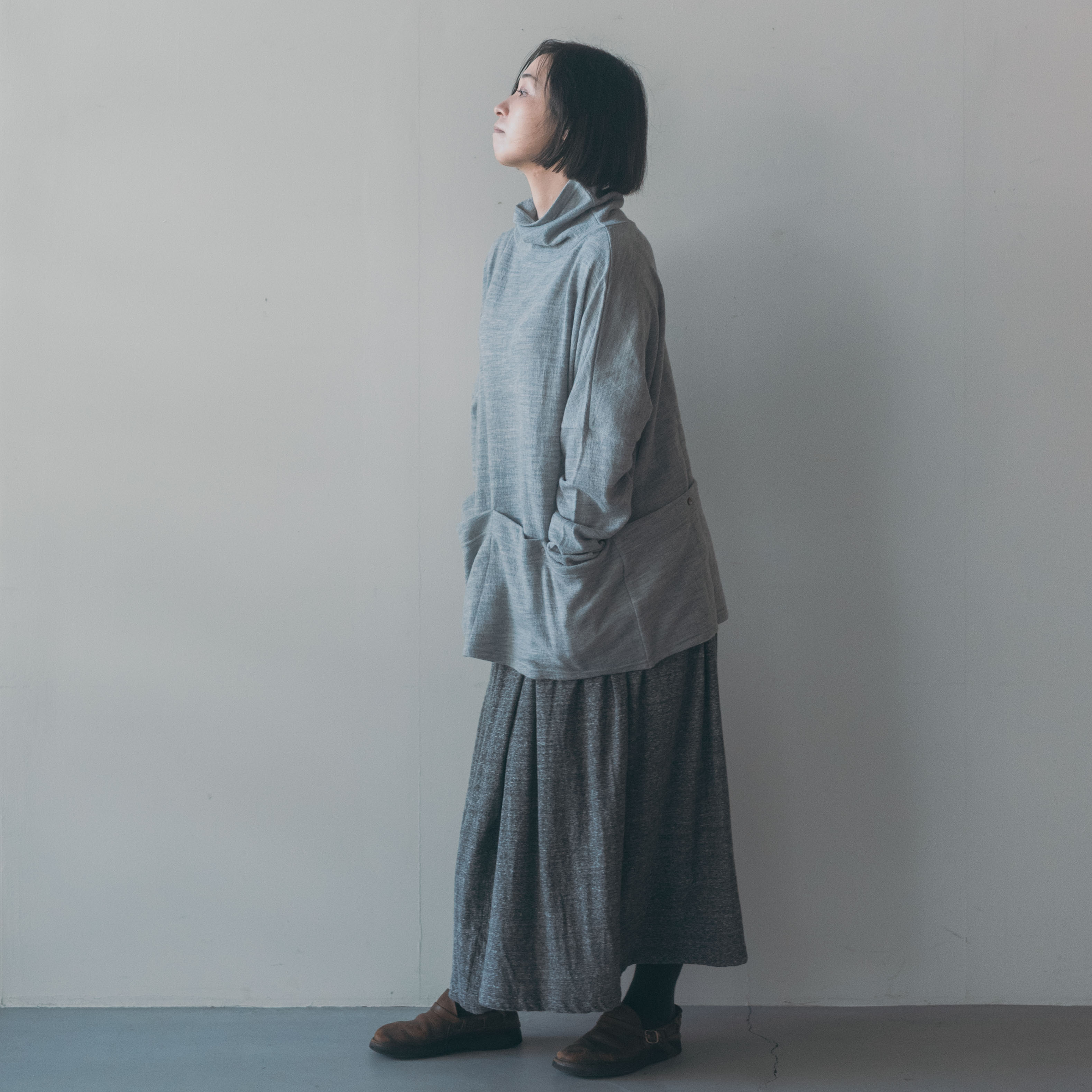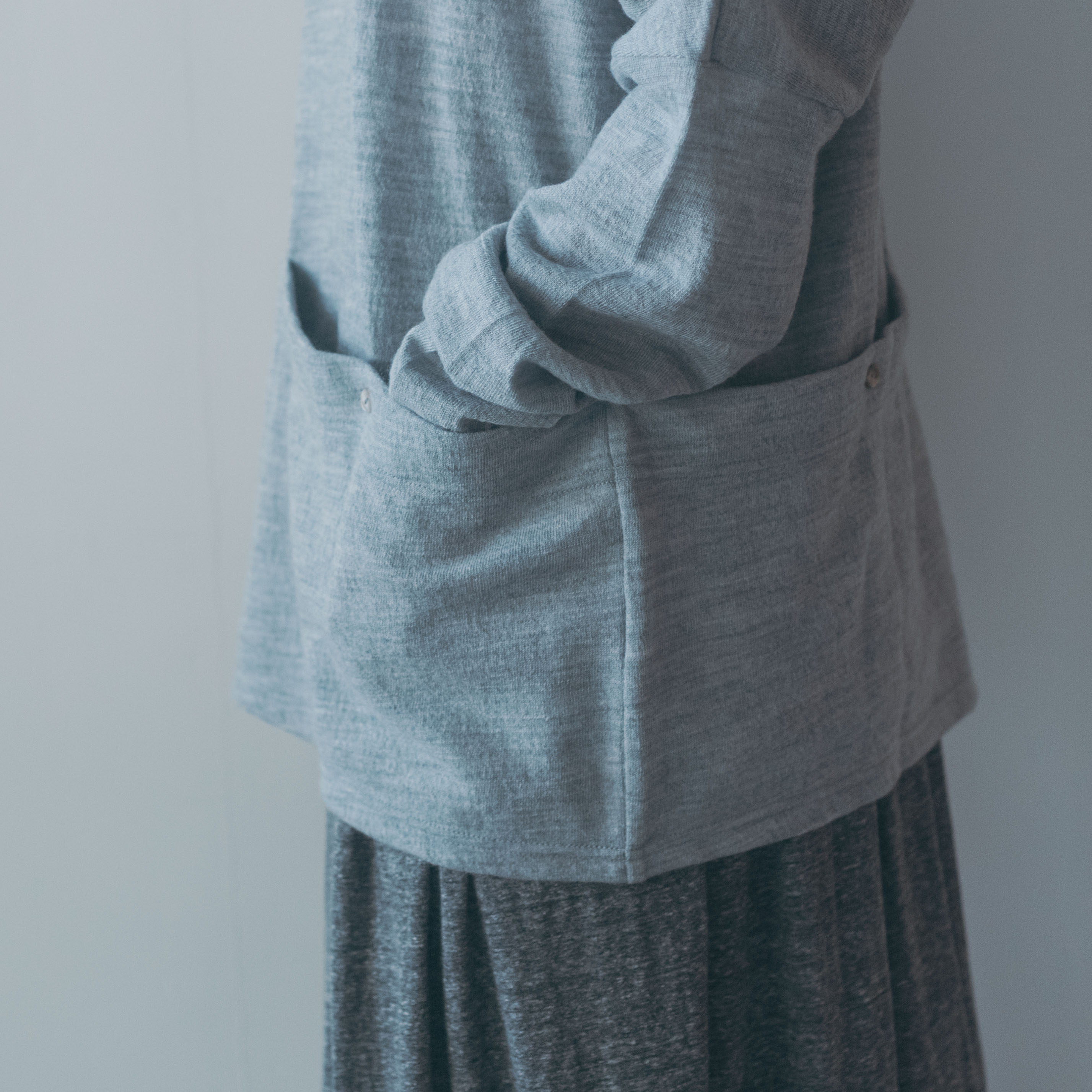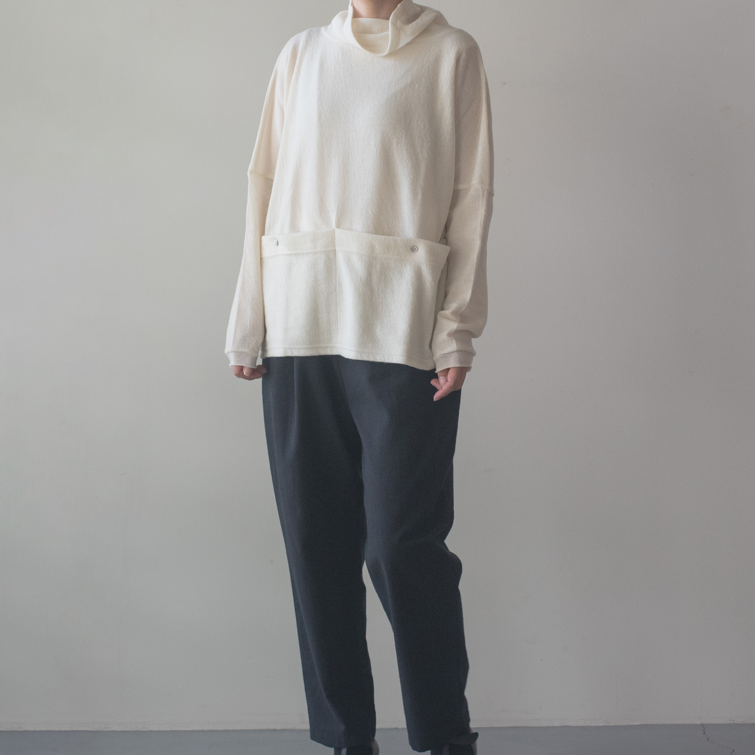 編みの性質上、少しずつ斜行します。ピリング(毛玉)が出来た場合はT字カミソリでそっと撫でるように取り除いてください。国内工場にて縫製しておりますが、寸法などは個体差が若干ございます