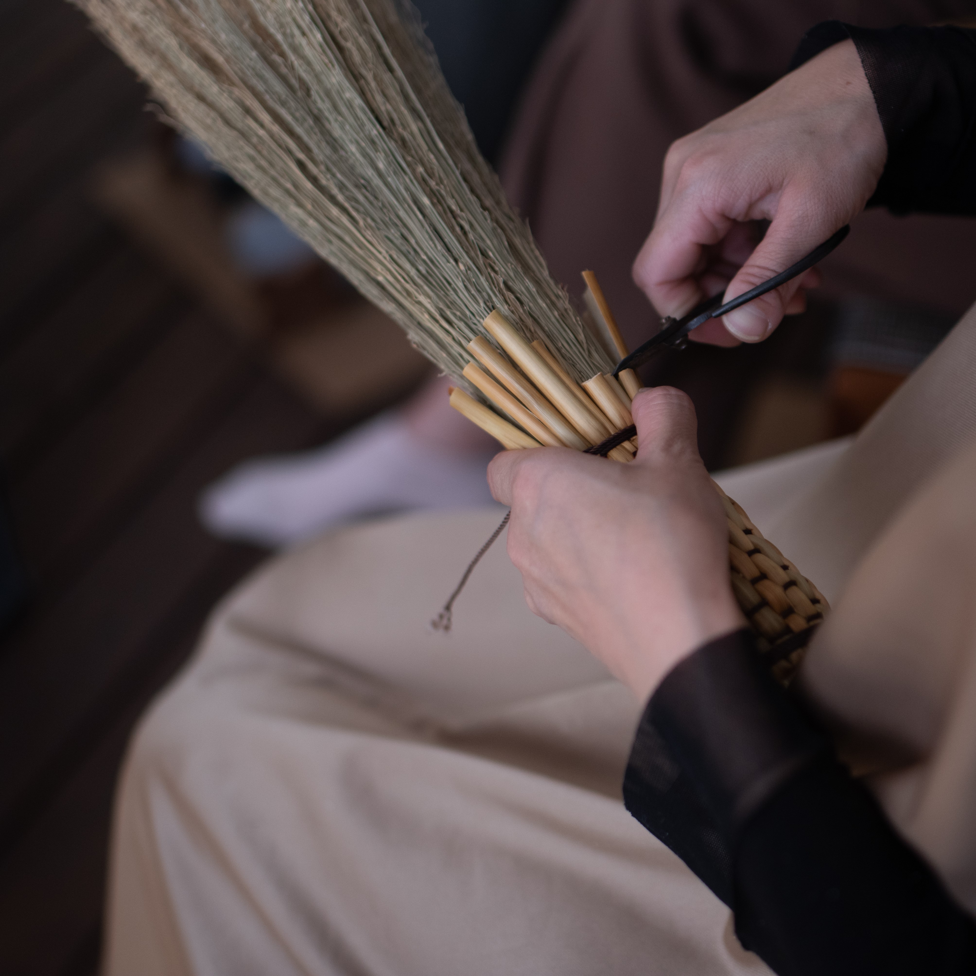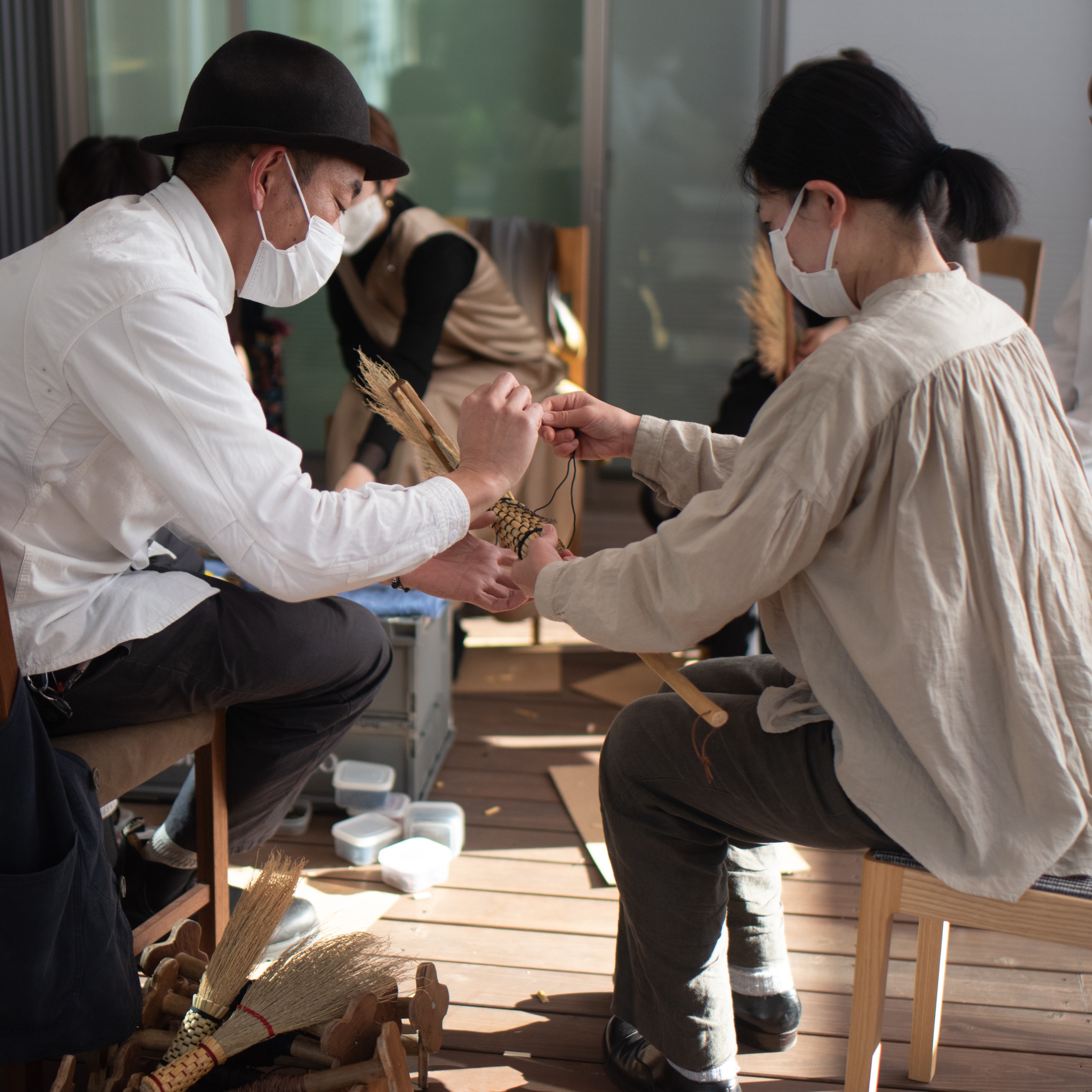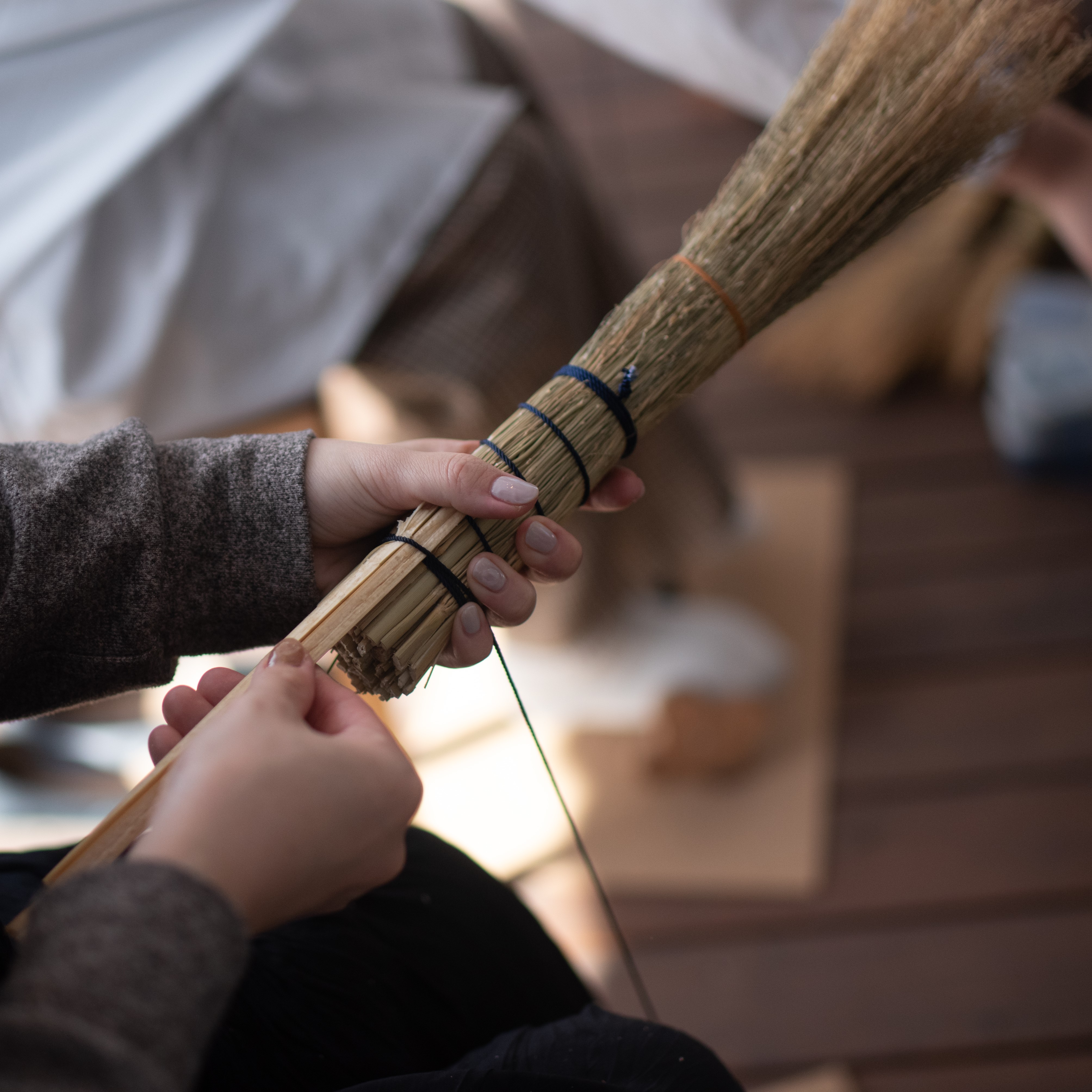 OPEN STUDIO exhibition 2025 開催中、作家のタローさんに「ちいさなほうき作り」をご指南頂きます。