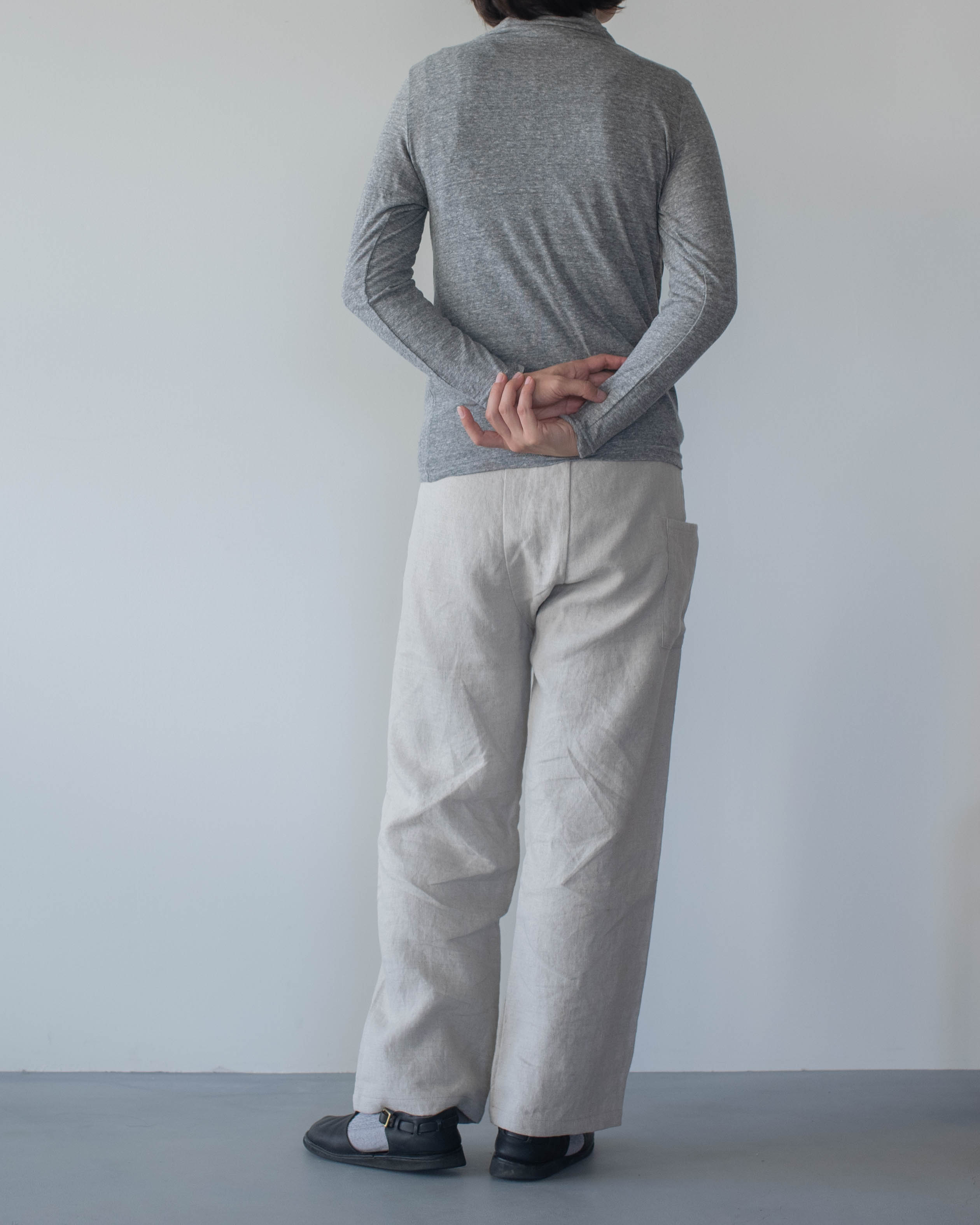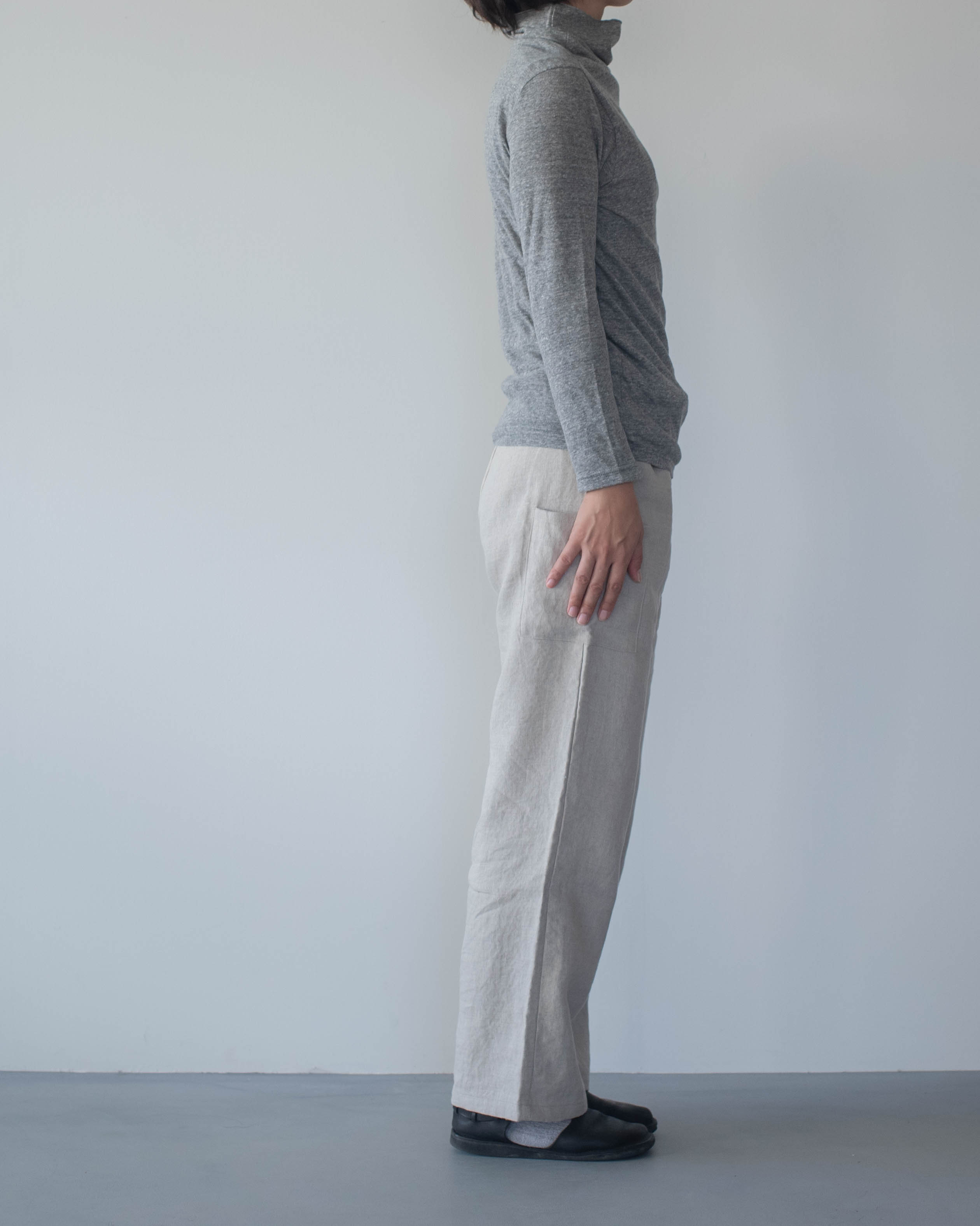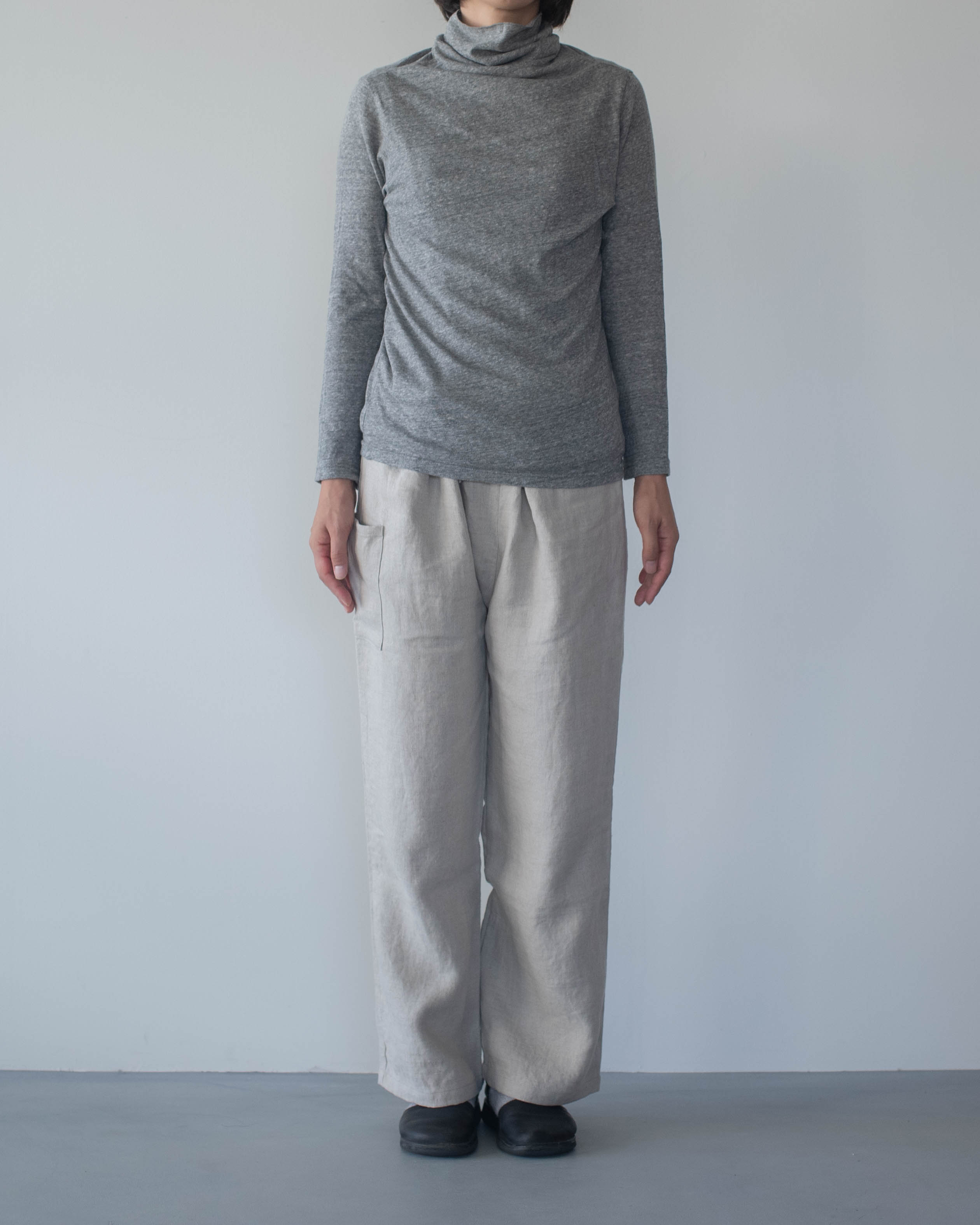 タートル部分は、ゆるめの寸法で、首元にたわむ感じです。首に沿わせたい場合は、軽く捻りながらご着用ください。