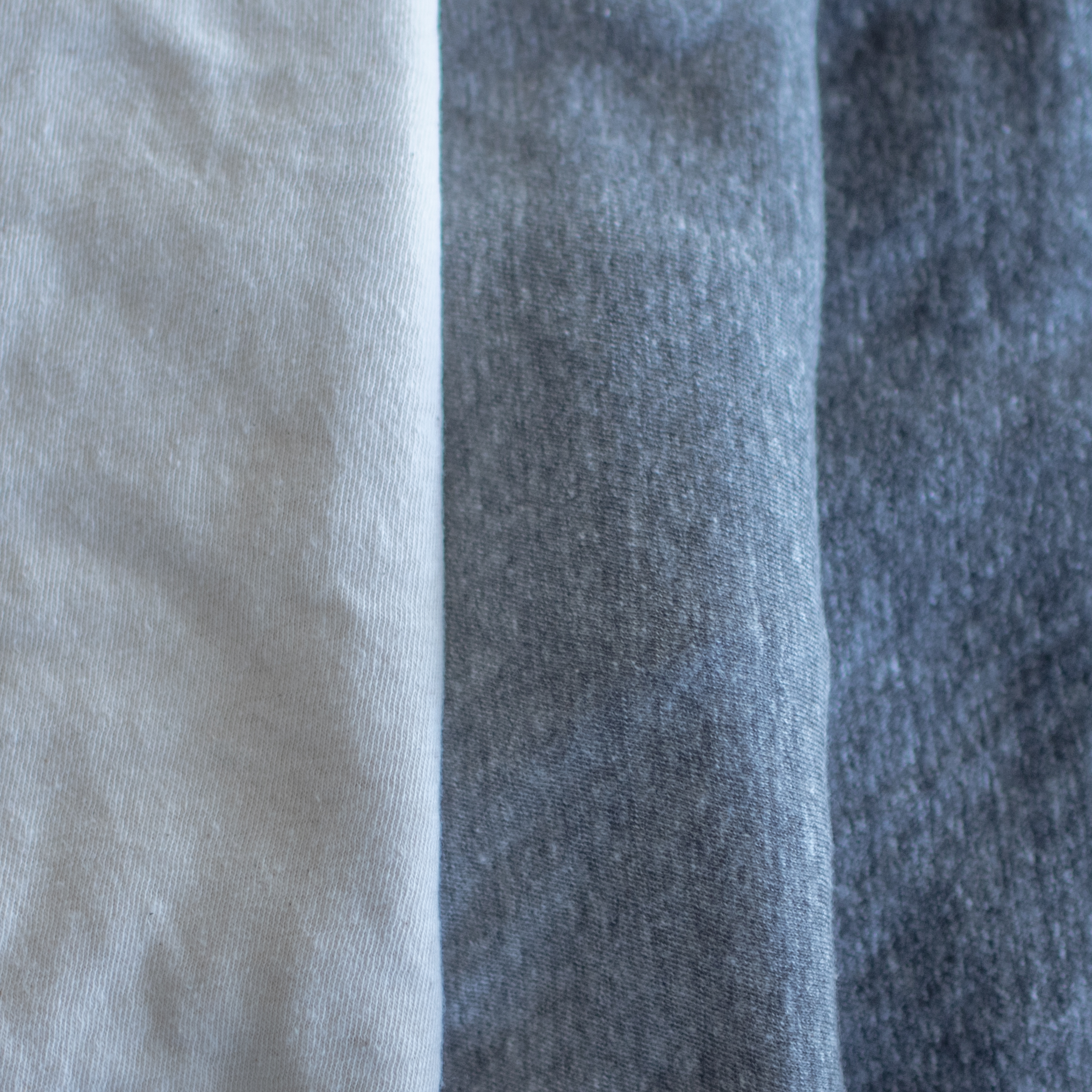 SARAXJIJIの定番中の定番、オリジナル素材ラフィーガーゼは、通常廃棄される落ち綿を利用したとても柔らかくて軽いコットンの天竺です。