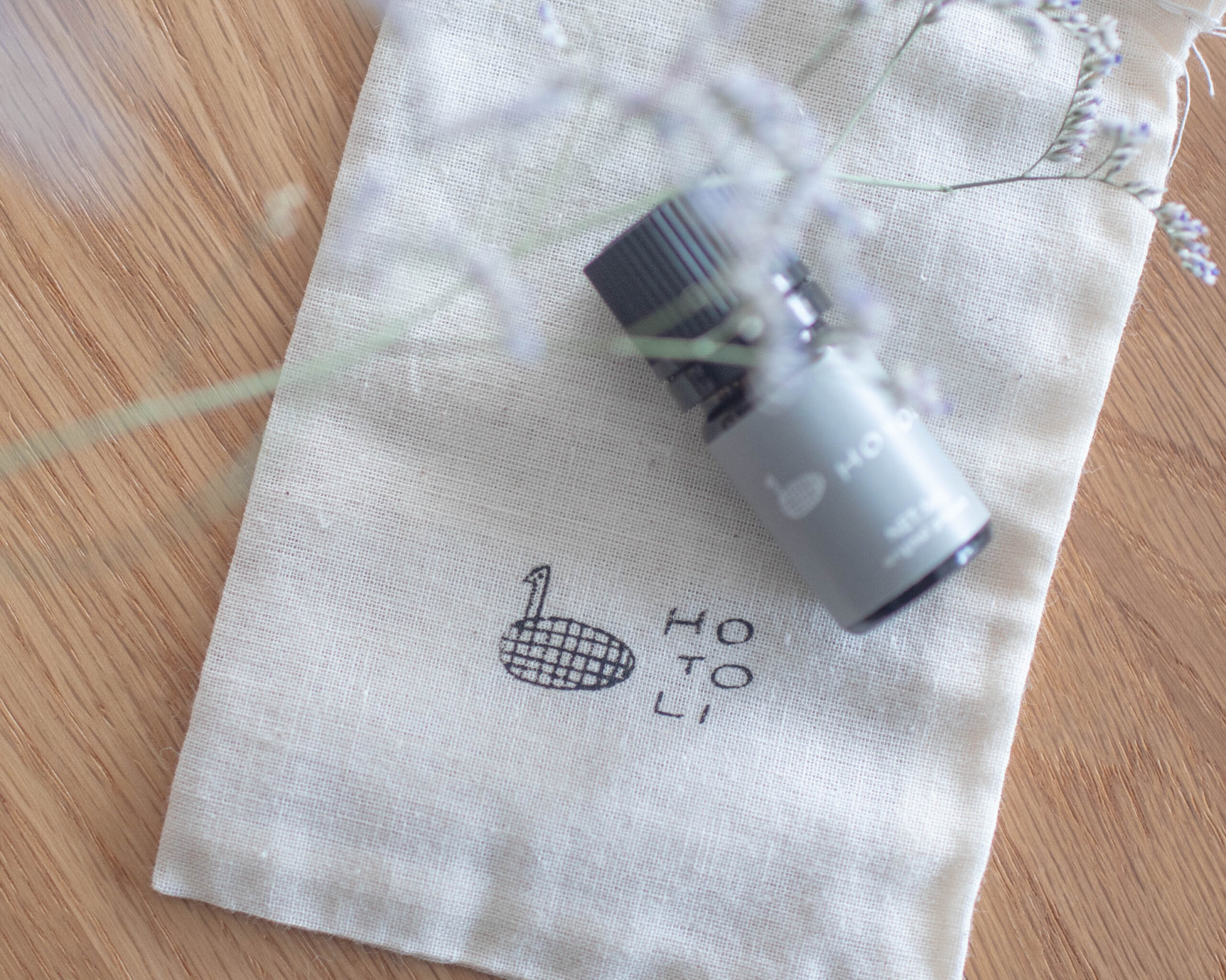 HOTOLIのロゴをあしらったちいさな巾着入りの特別パッケージで。