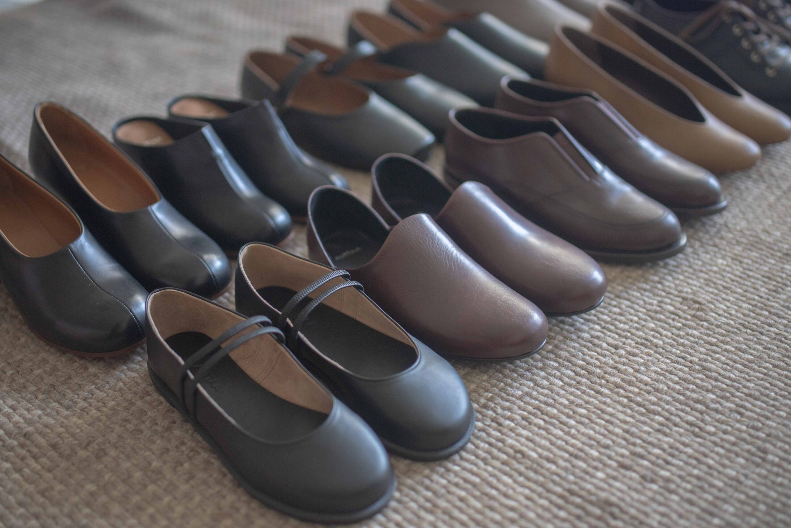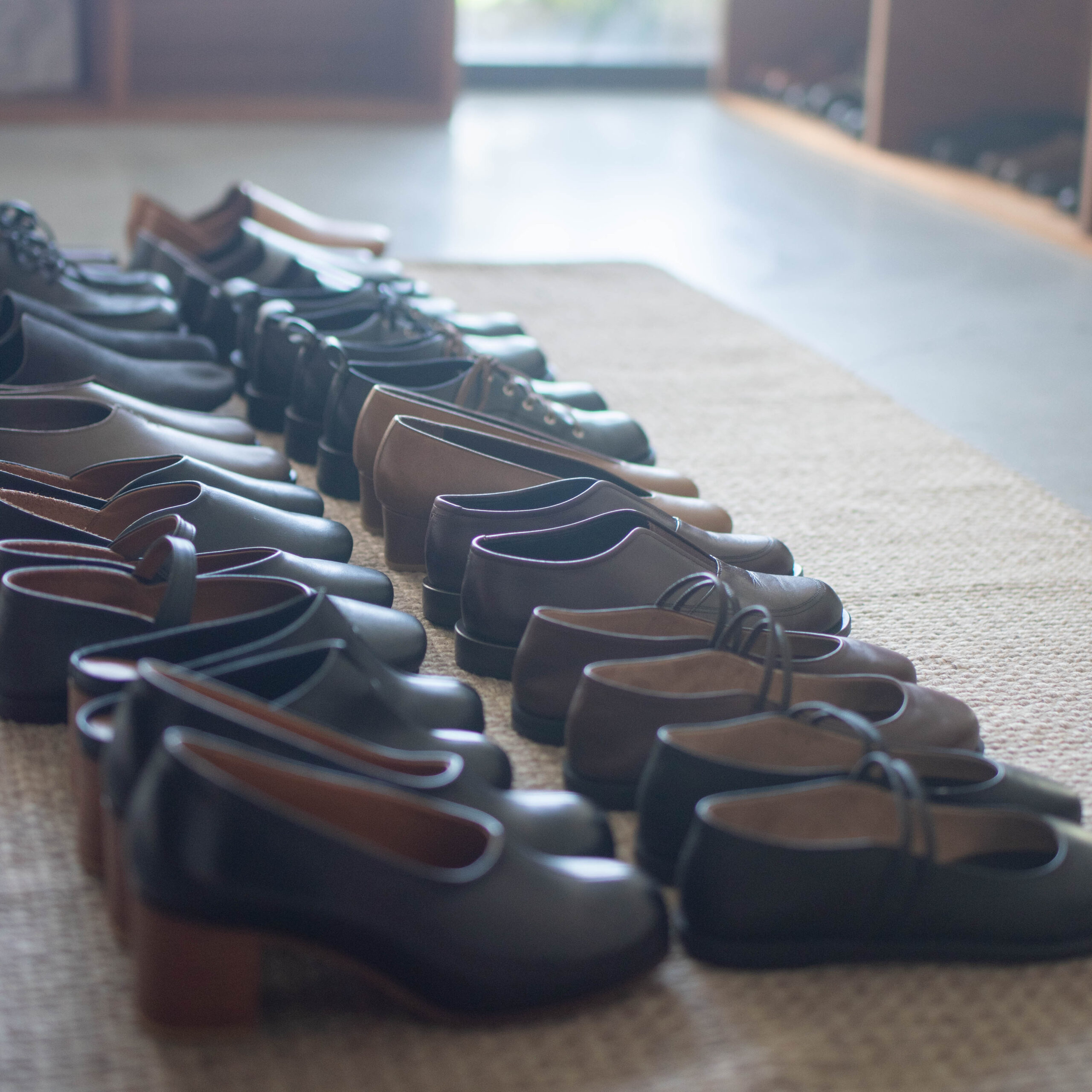 定番としてお取り扱いさせていただいているRoom Shoesシリーズの他に、シューレースが目を惹くレディなパンプスやウッドヒールが美しいミュール、メンズライクで端正なフォルムのショートブーツから紳士用のフォーマルシューズまで、今期の新作から定番の形まで、さまざまな種類を性別を問わず楽しくお選びいただけるようにご準備いただきます。